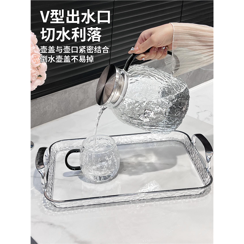 水波纹玻璃冷水壶耐高温家用耐热凉水壶大容量凉白开水杯茶壶套装