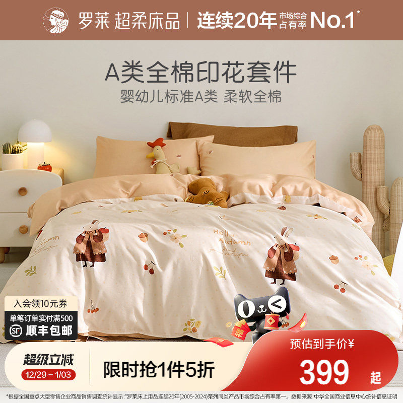 罗莱家纺2025新款儿童床上用品四件套全棉纯棉床单被套被罩床笠