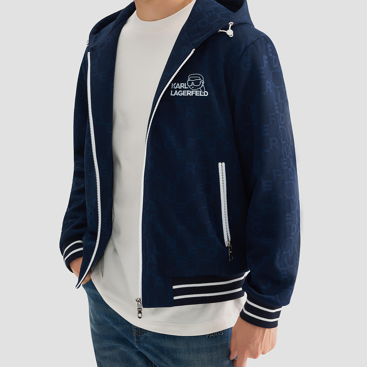 KARL LAGERFELD 25秋新品休闲夹克连帽外套老佛爷男士外套设计师