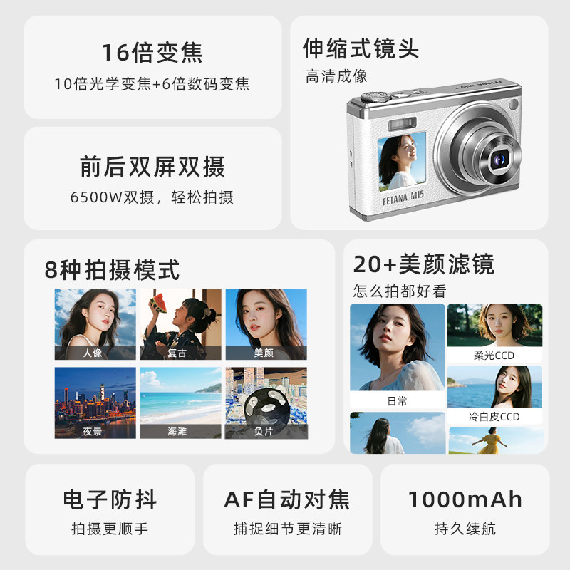 前后双屏 伸缩镜头 6000W像素16X变焦4K录制