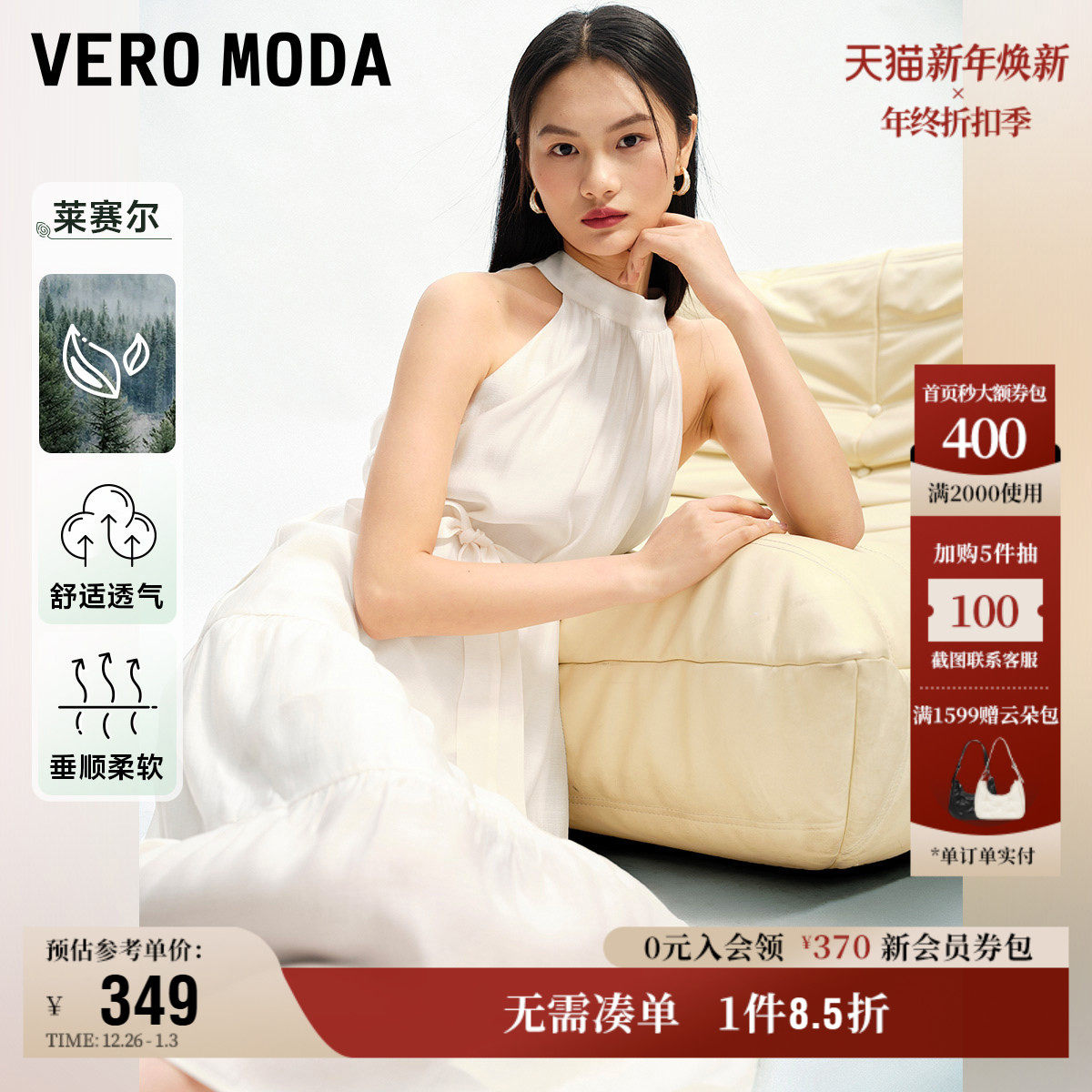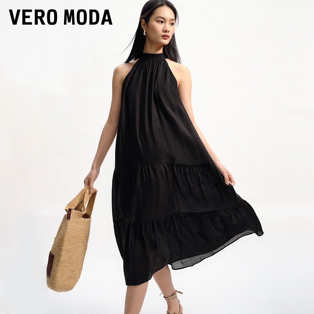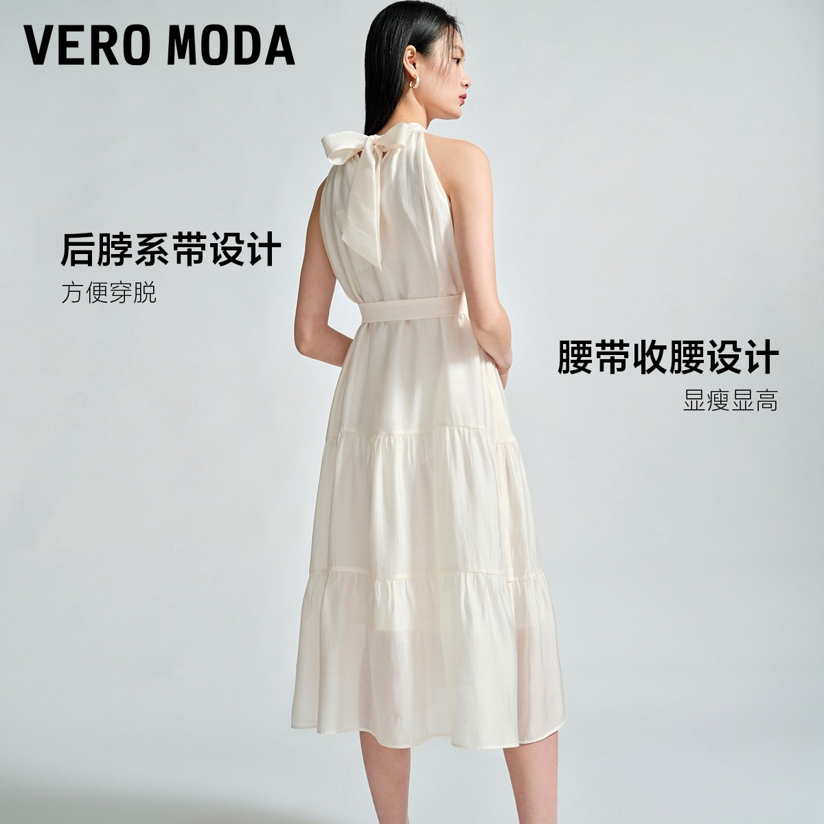 Vero Moda奥莱连衣裙夏季新款A字甜美优雅浪漫度假高级挂脖长裙子