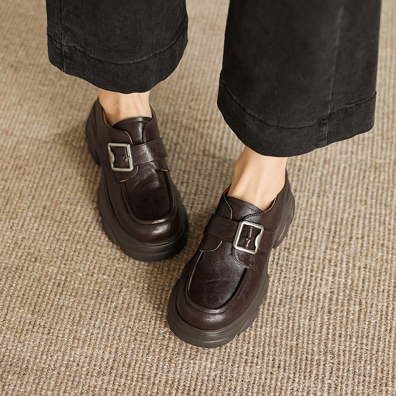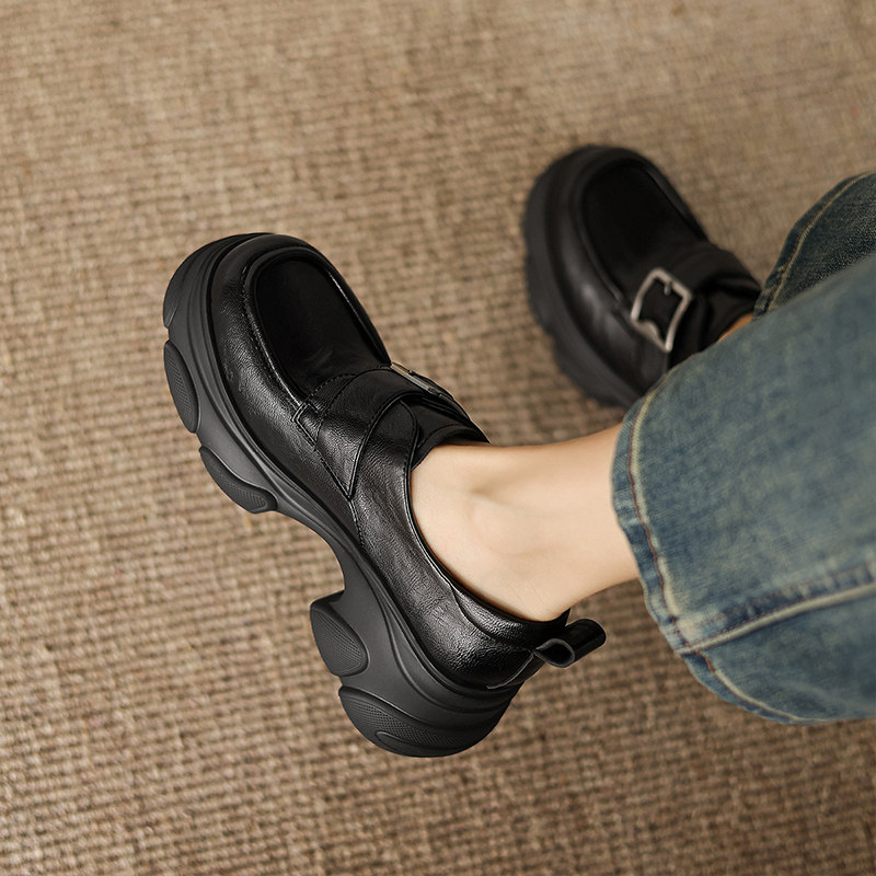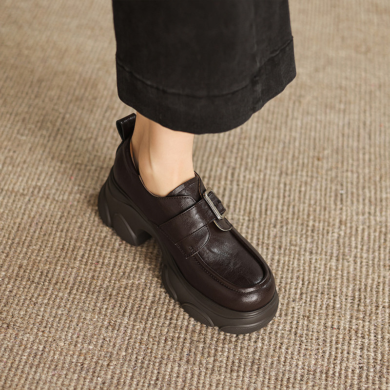 欧货真皮厚底小皮鞋女英伦风圆头加绒德比鞋小个子增高乐福鞋单鞋