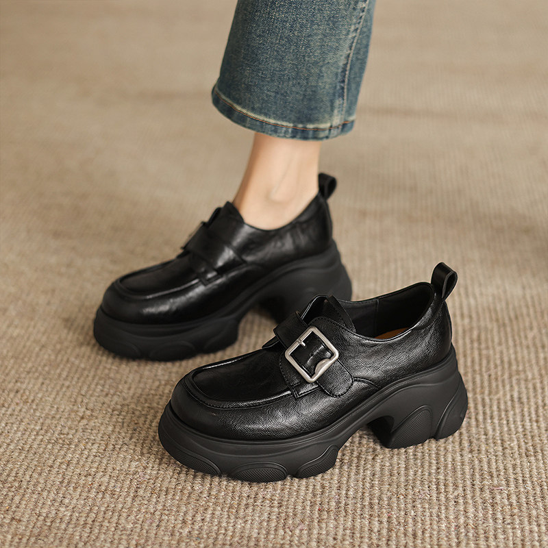 真皮厚底乐福鞋女2025春秋新款季松糕黑色百搭单鞋jk英伦风小皮鞋