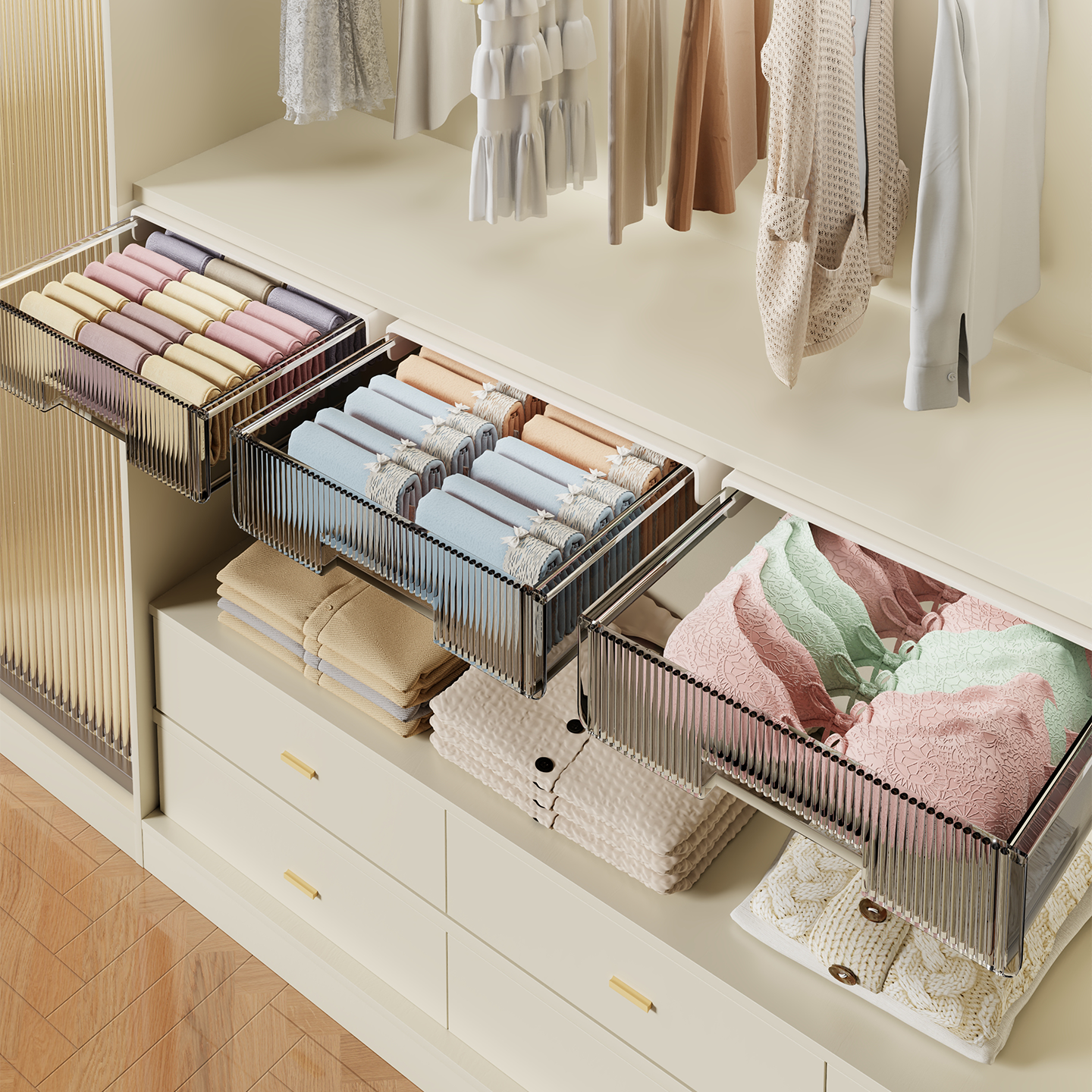 衣柜抽拉隔板柜子悬挂袜子内衣储物架子挂架家用滑动式拉篮收纳盒