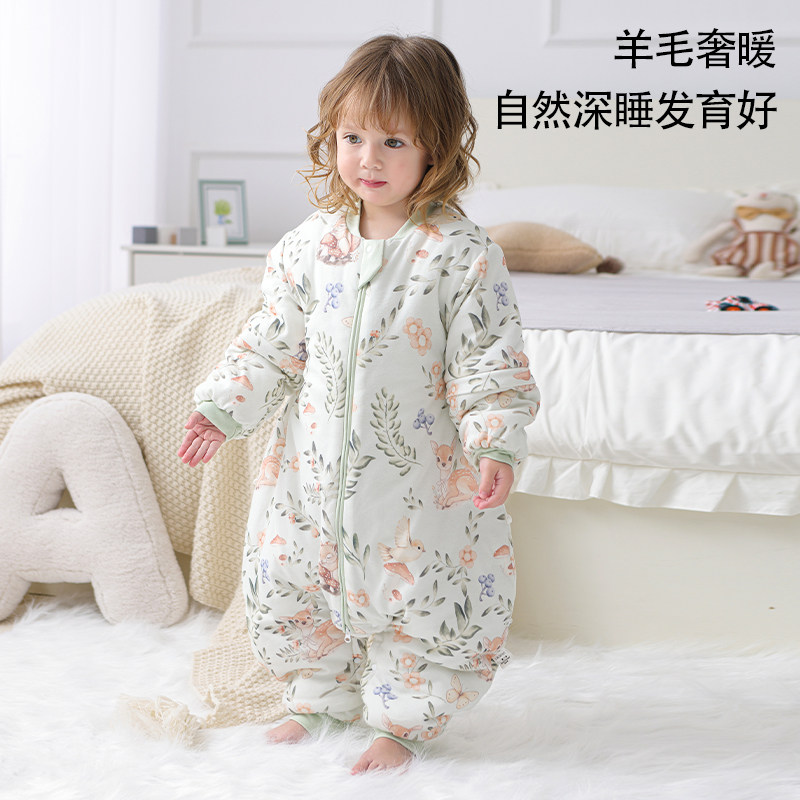 睡袋婴儿羊毛暖姜春秋冬款恒温棉宝宝分腿婴幼儿童四季通用防踢被