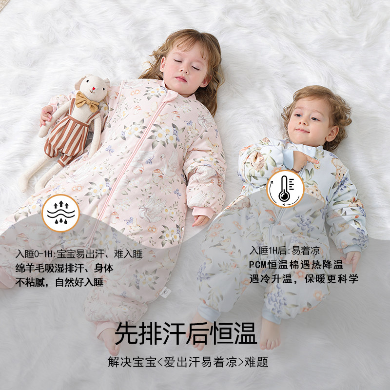 贝肽斯[肽柔]婴儿睡袋秋冬款儿童宝宝防踢被恒温分腿睡袋四季通用