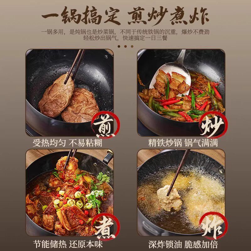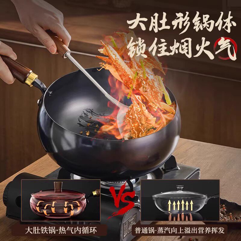 苏泊尔大肚锅铁锅炒菜锅家用无涂层不粘炒锅氮化防锈一人食小铁锅