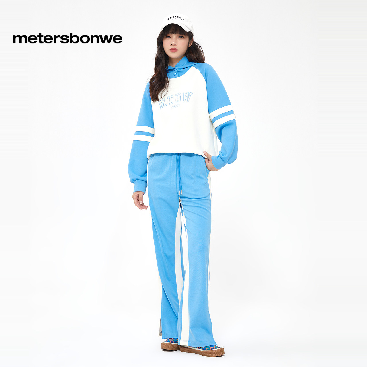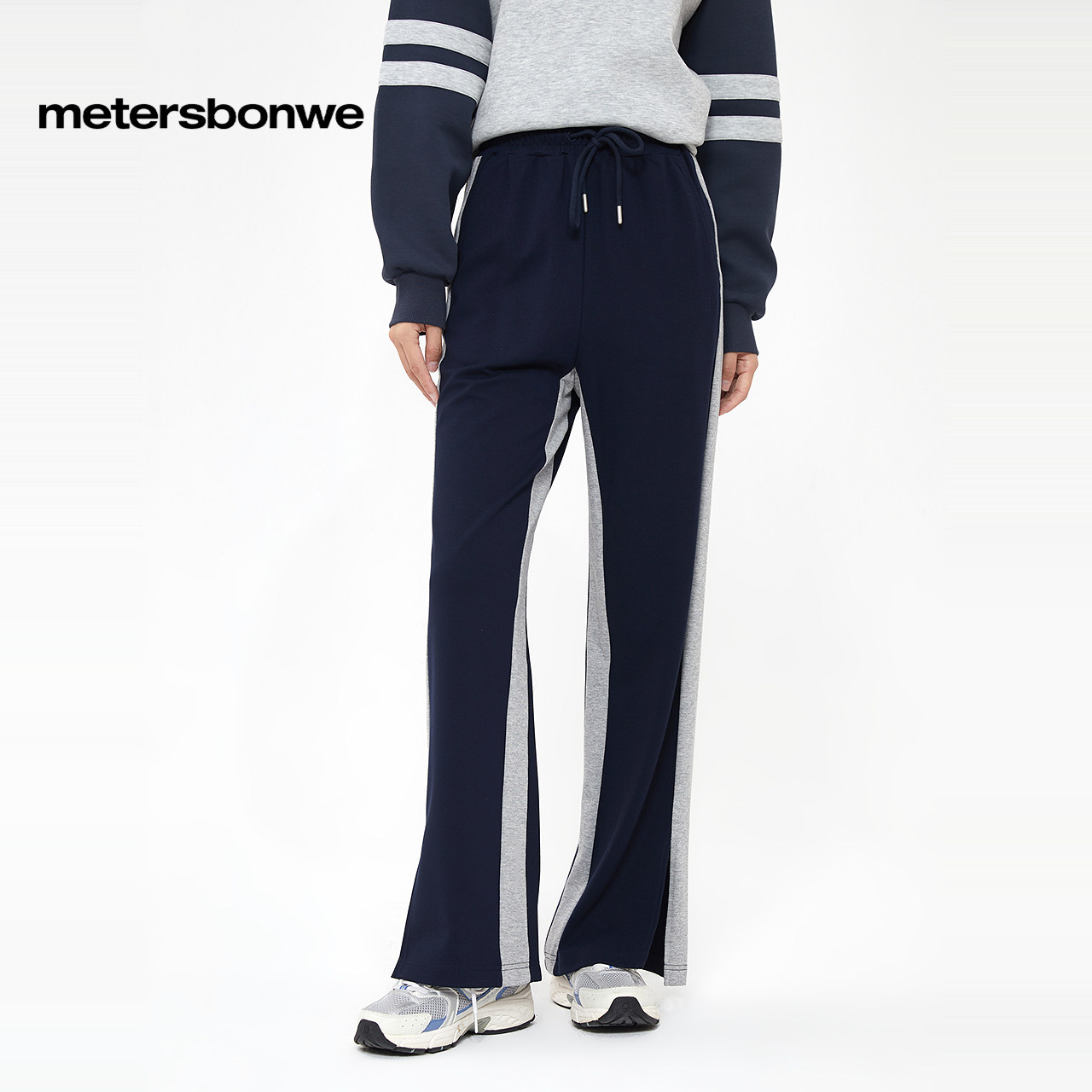美特斯邦威长裤女春季新款时尚撞色直筒休闲裤束腰下装女裤子长裤