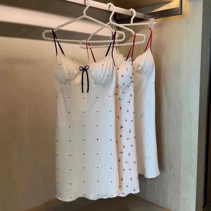 2025新款带胸垫睡衣女冰丝夏天性感蕾丝吊带睡裙女薄款短裙波点