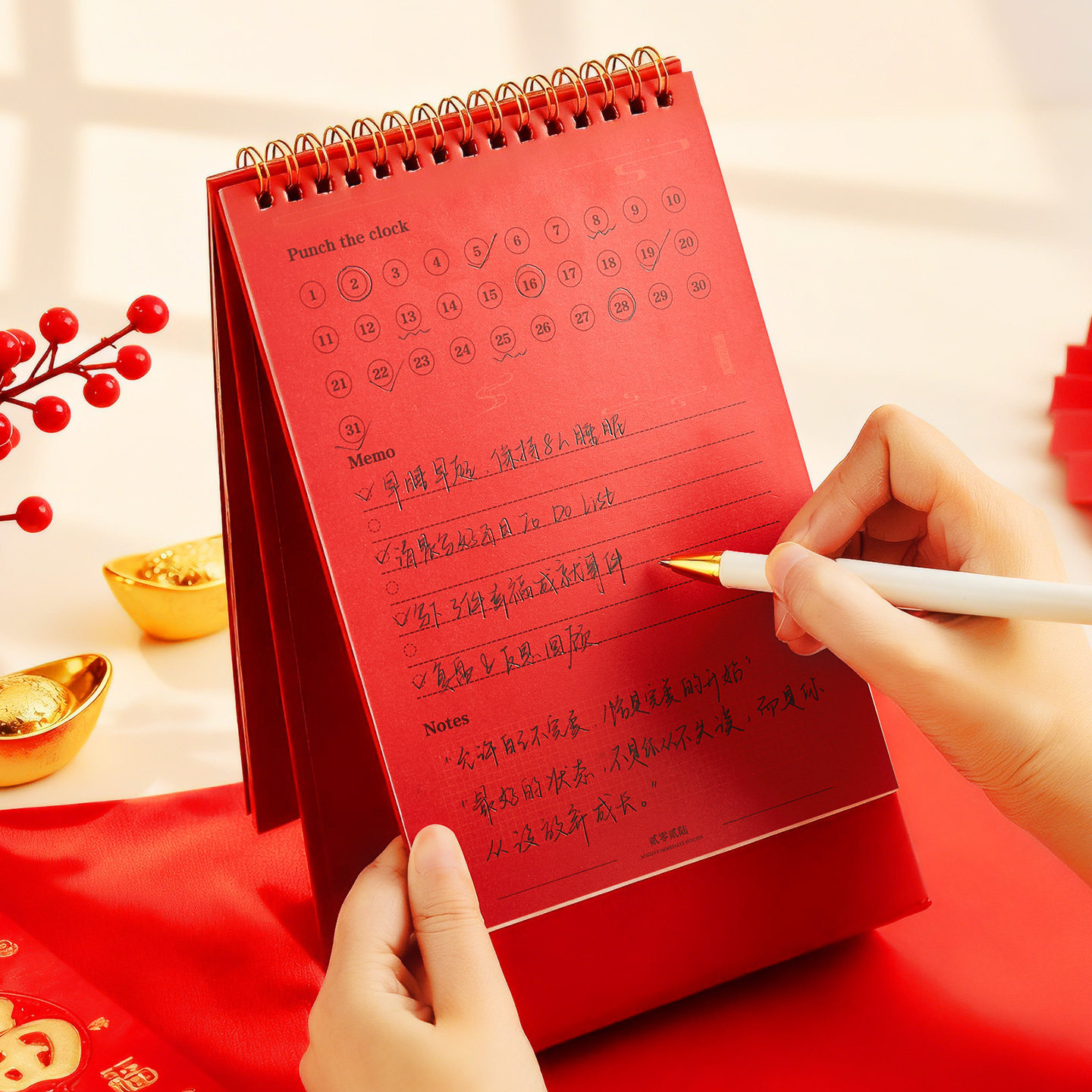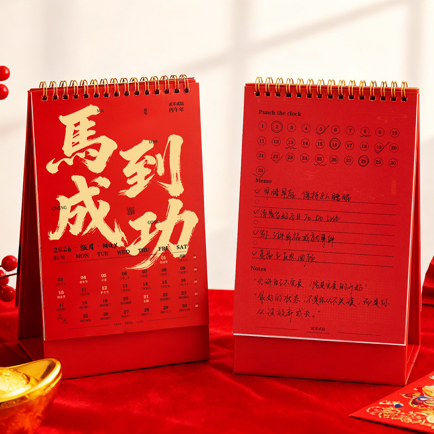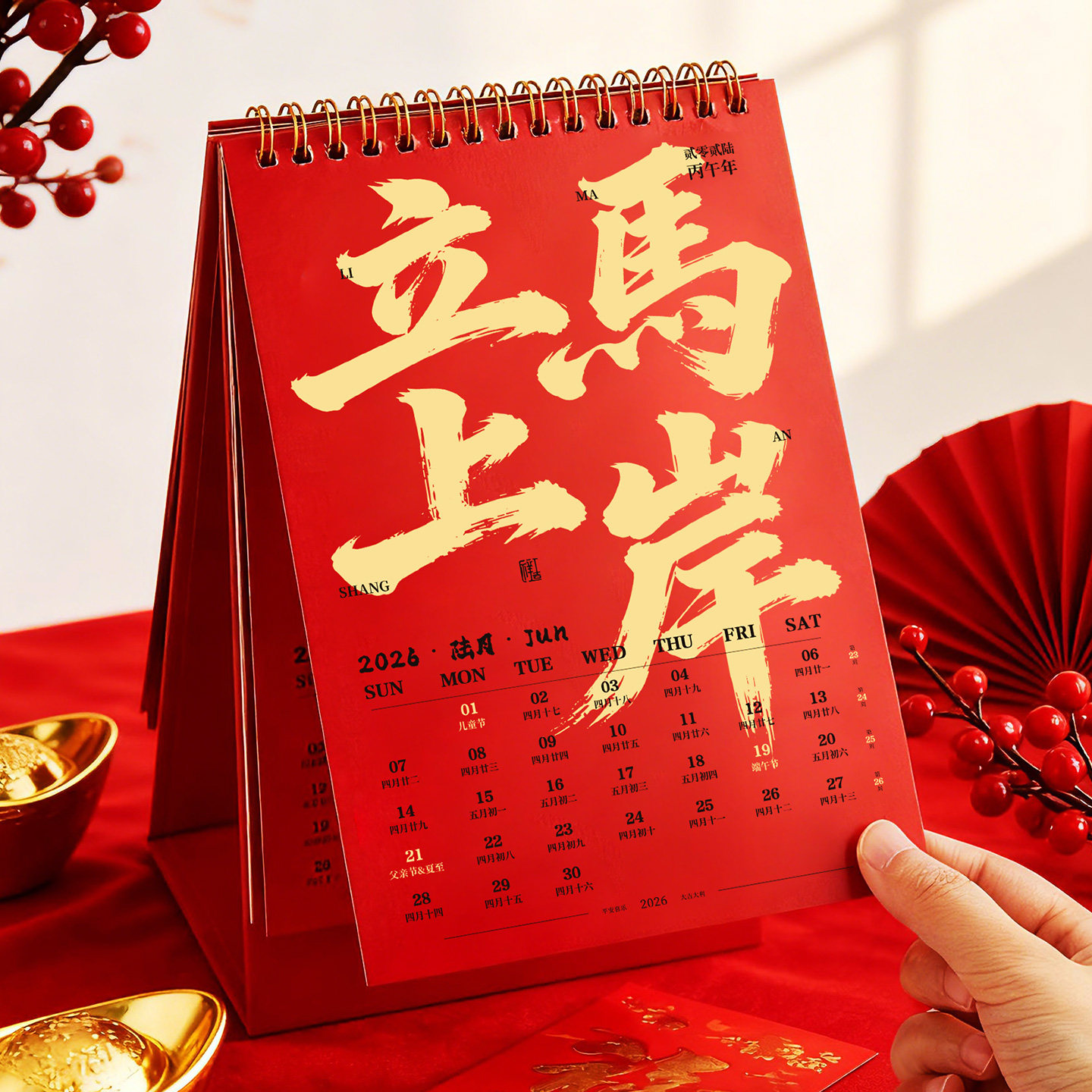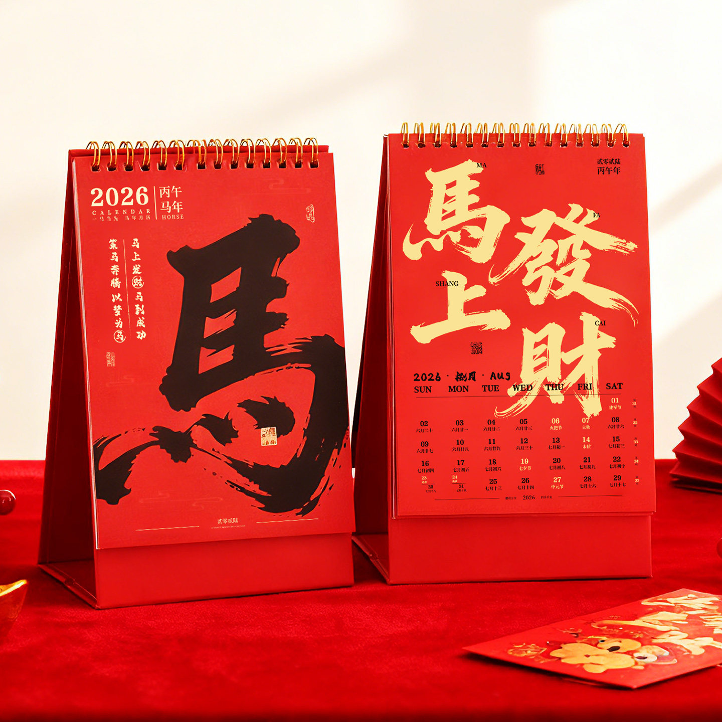 2026年新款马年国风祝福文字台历定制古风高颜值办公室桌面摆件日历记事打卡倒计时月历公司企业订做logo礼品