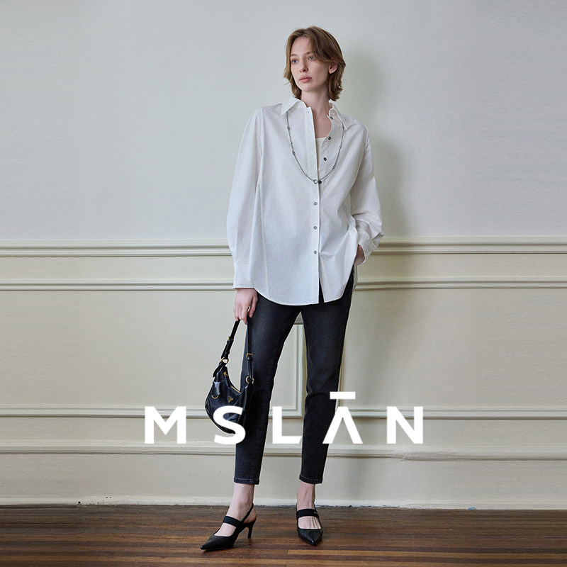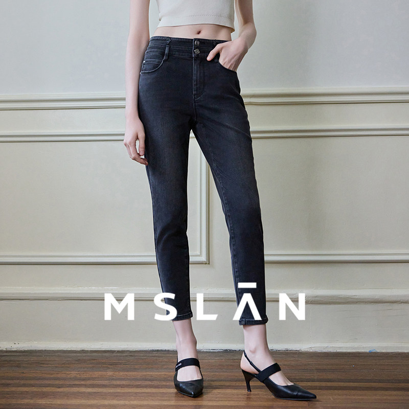 MSLAN商场同款26春新女时髦水洗白双腰头小脚裤长裤MFDK376