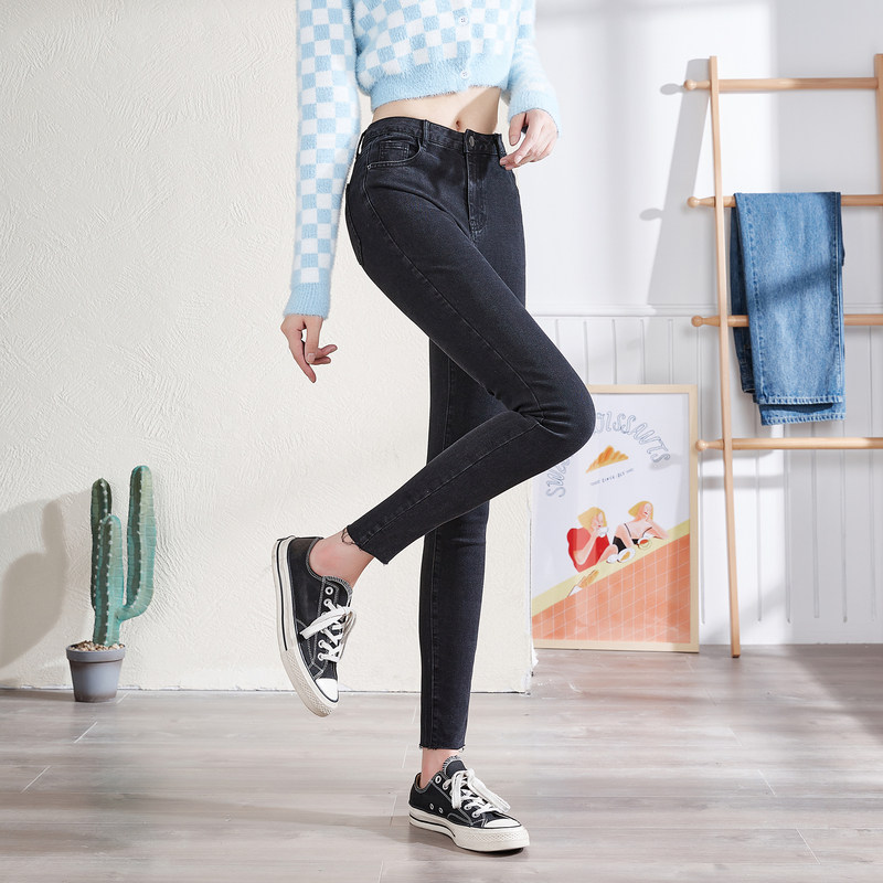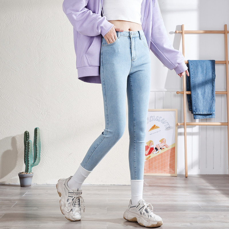 唐狮高腰修身牛仔裤女士秋冬款百搭显瘦显高裤子紧身小脚裤铅笔裤