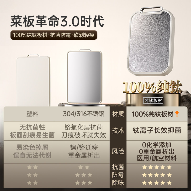 炊大皇钛菜板防霉抗菌家用双面砧板整木乌檀木切菜板厨房专用案板