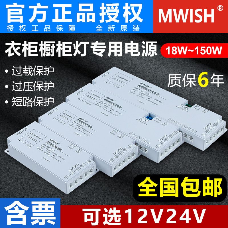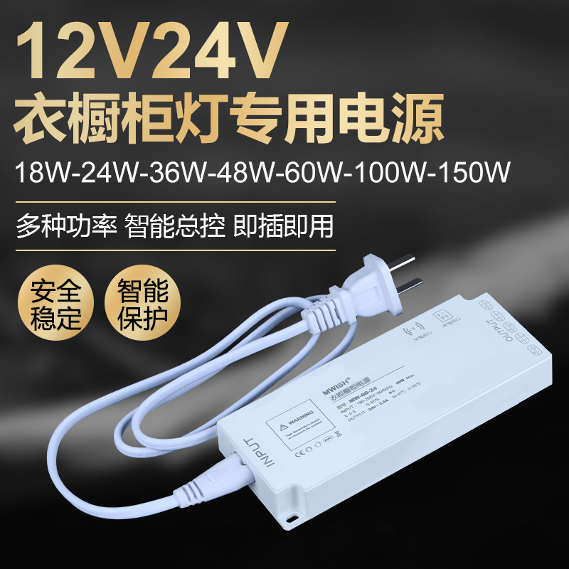 明伟衣柜橱柜灯开关电源酒柜专用灯带变压器220V转12V24V杜邦接口