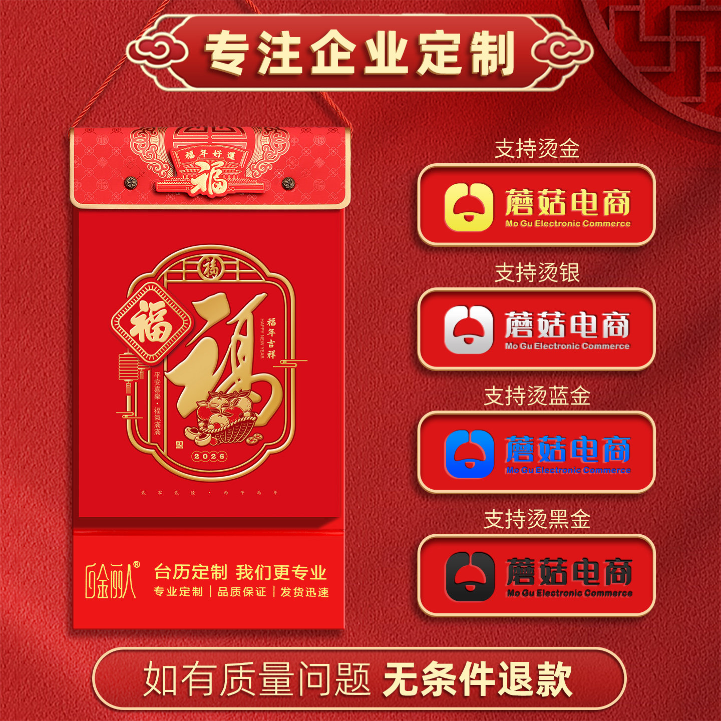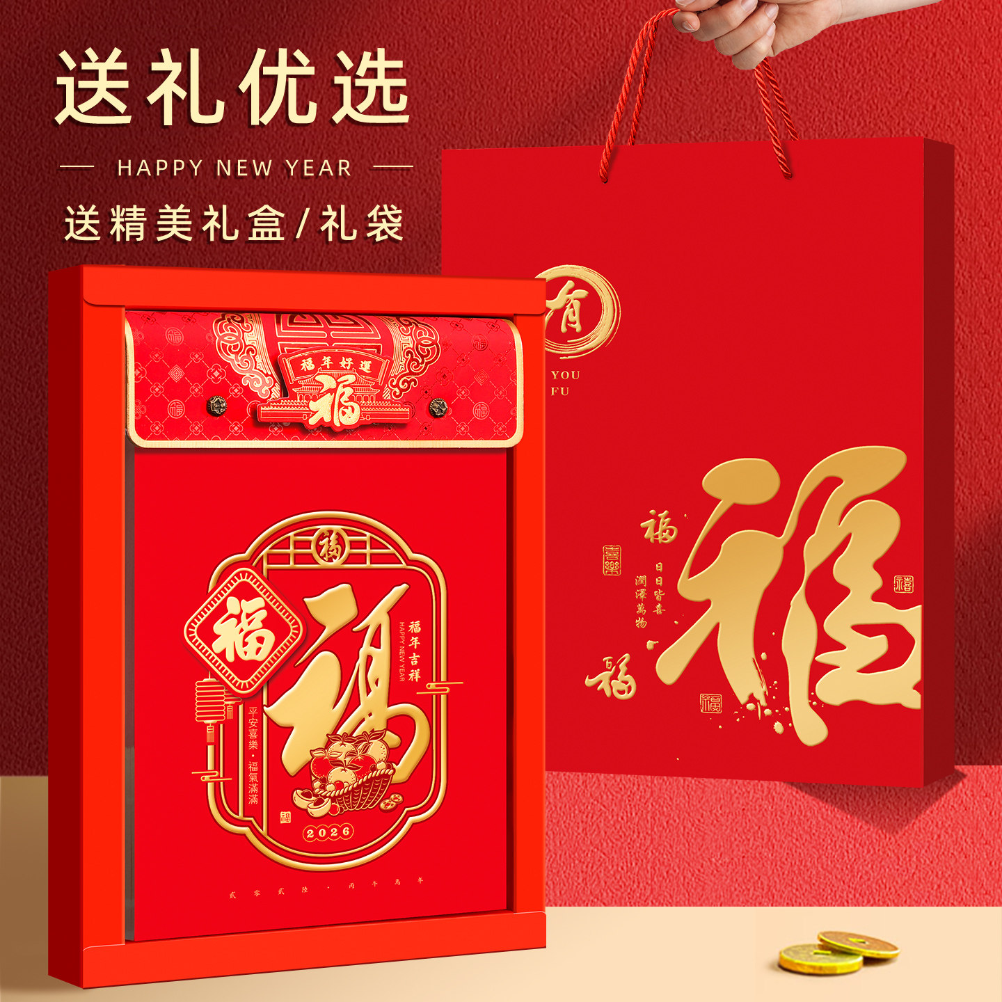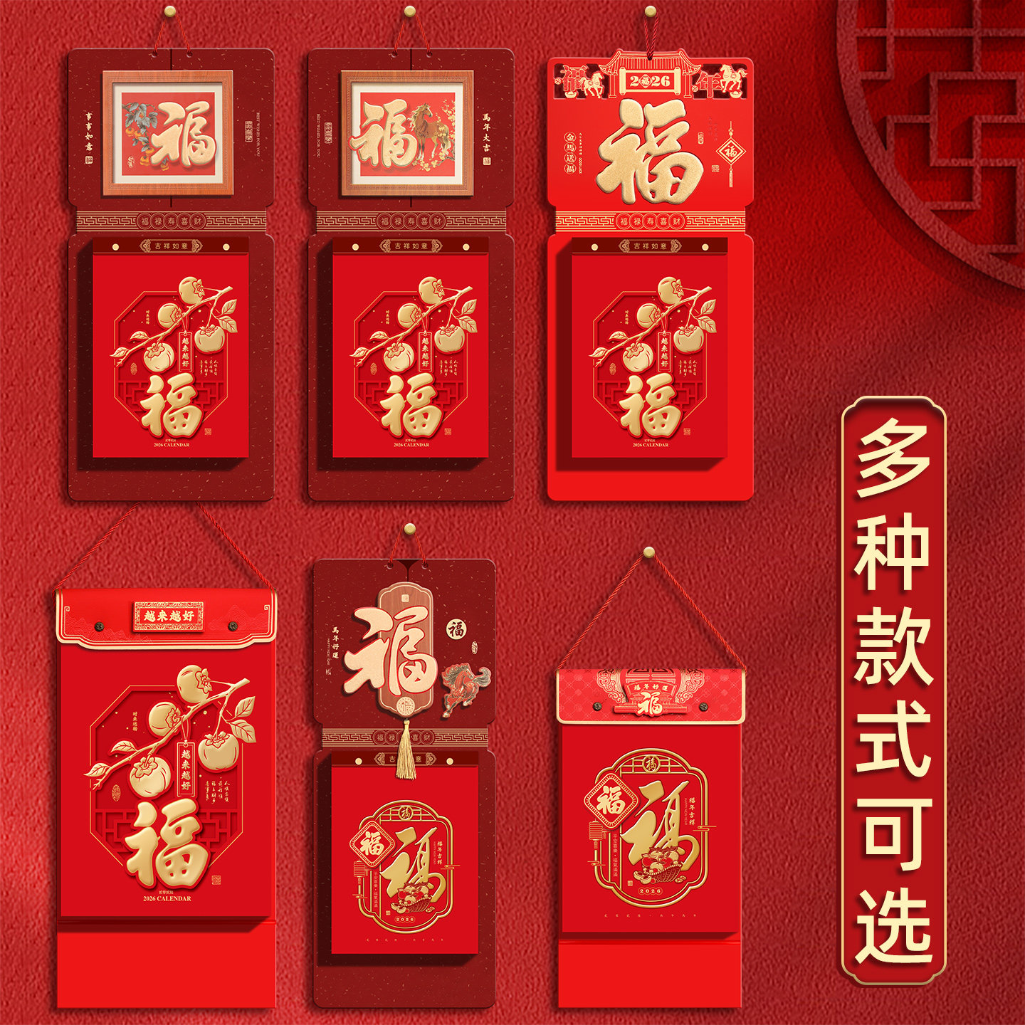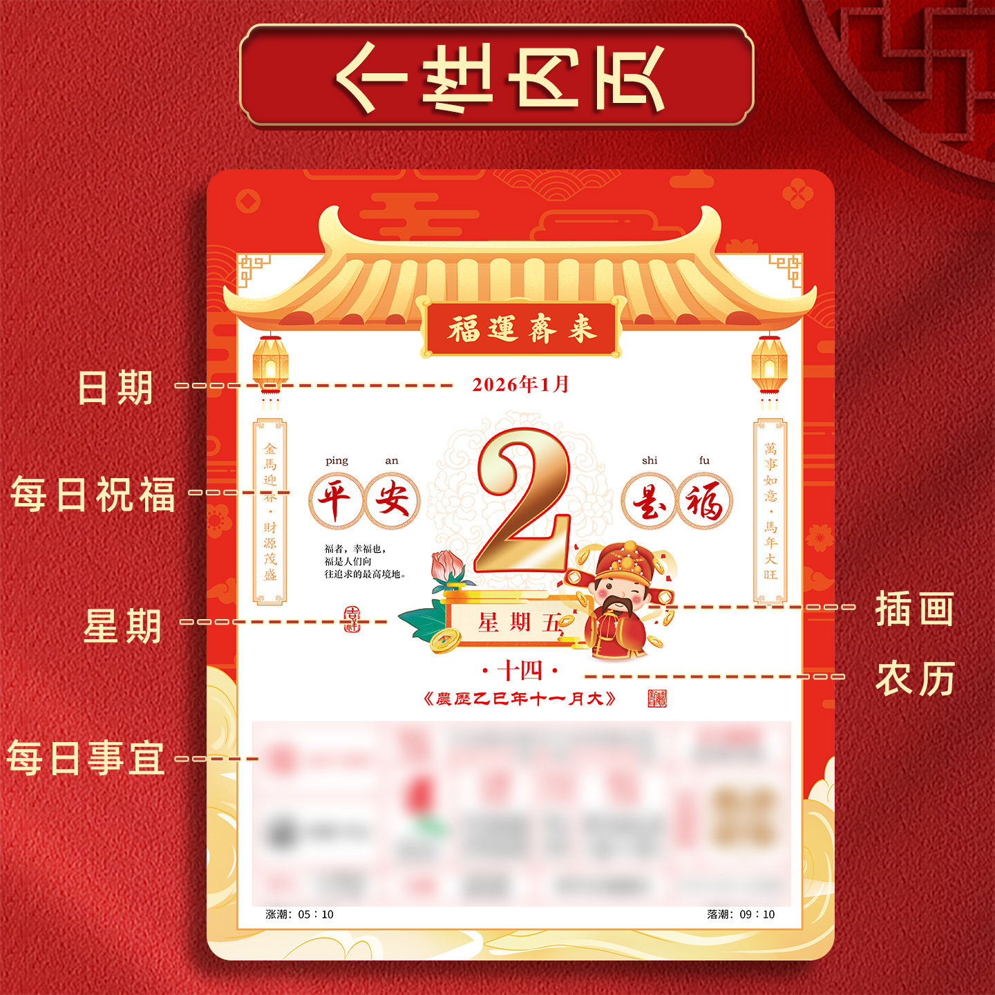 挂历2026年新款单日历老黄历老式手撕历家用挂墙客厅定做马年中国风福字传统高档加厚皇历万年历通书定制logo