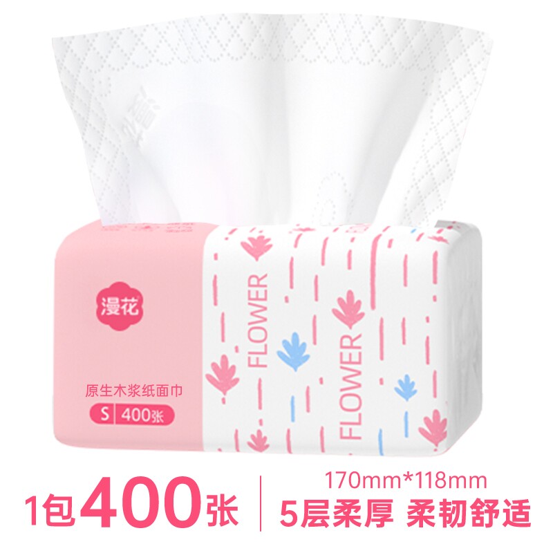 漫花大包纸巾尺寸家用抽纸实惠装纸抽整箱卫生加大气垫餐巾