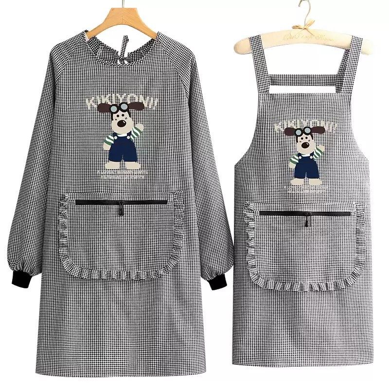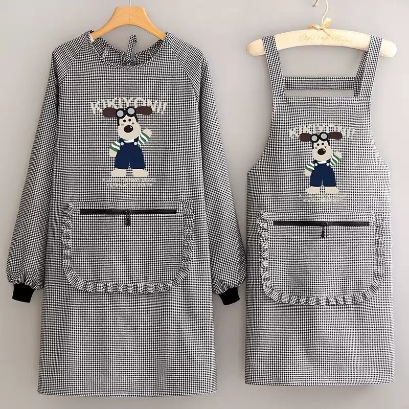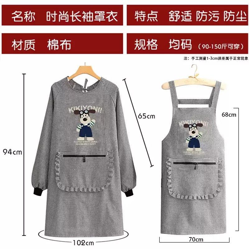 棉布围裙新款厨房家用透气长袖罩衣女防污耐磨做饭工作服围裙简约