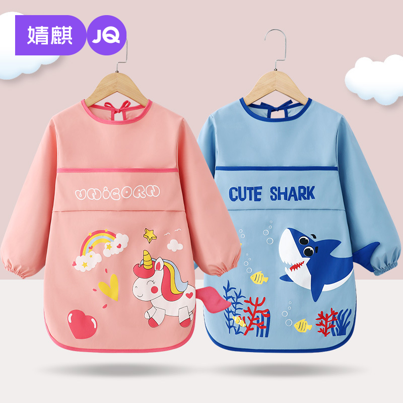 婧麒儿童罩衣春秋季男女孩防水防脏绘画美术围裙幼儿长袖宝宝围兜
