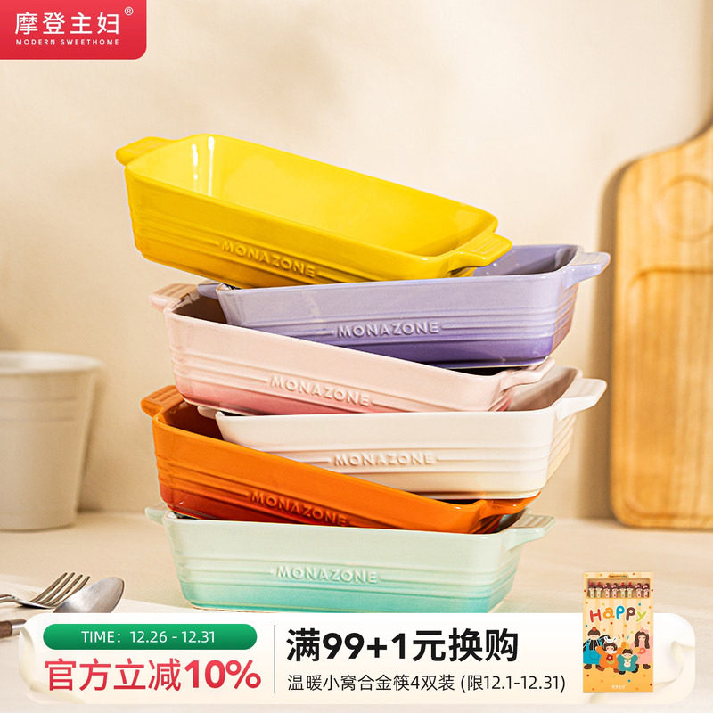 摩登主妇MONAZONE烤盘烤箱用陶瓷盘子双耳焗饭烤碗微波炉专用器皿