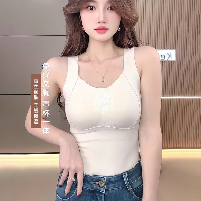 磨毛保暖背心女2025冬新款带胸垫一体无痕吊带打底内衣加绒加厚
