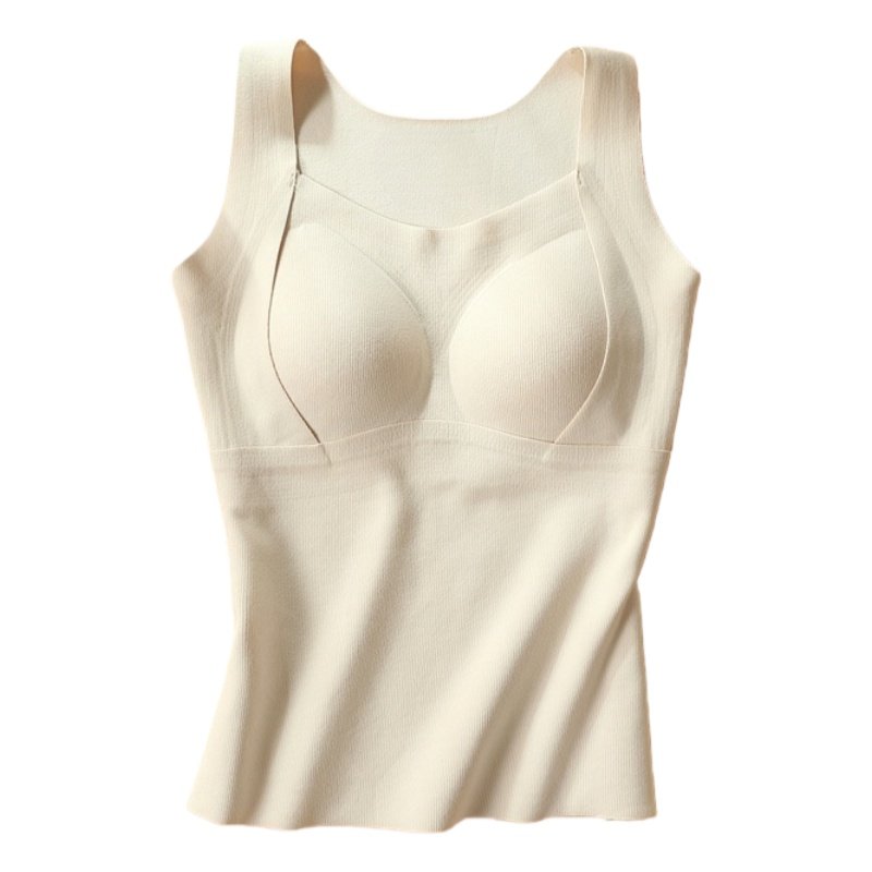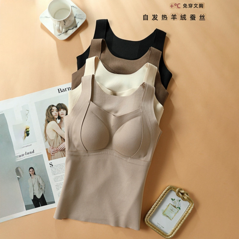 秋冬保暖背心女加绒发热带胸垫一体固定杯加厚德绒内衣打底上衣女