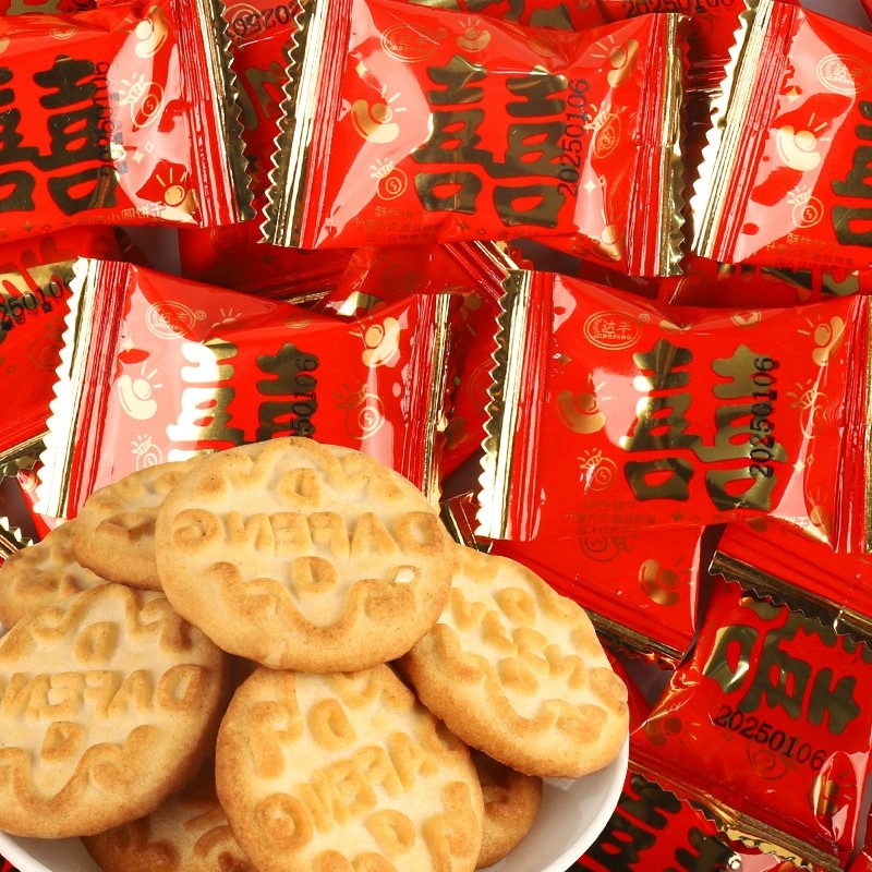 喜字小圆饼葱香味曲奇饼干独立小包装结婚订婚喜饼满月伴手礼零食