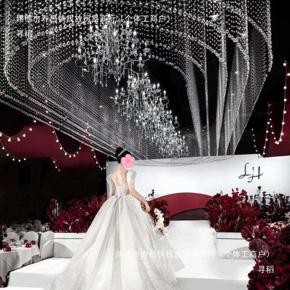 婚宴婚礼堂椭圆水晶珠帘吊顶铁艺骨架道具圆形舞台婚庆架子定位珠