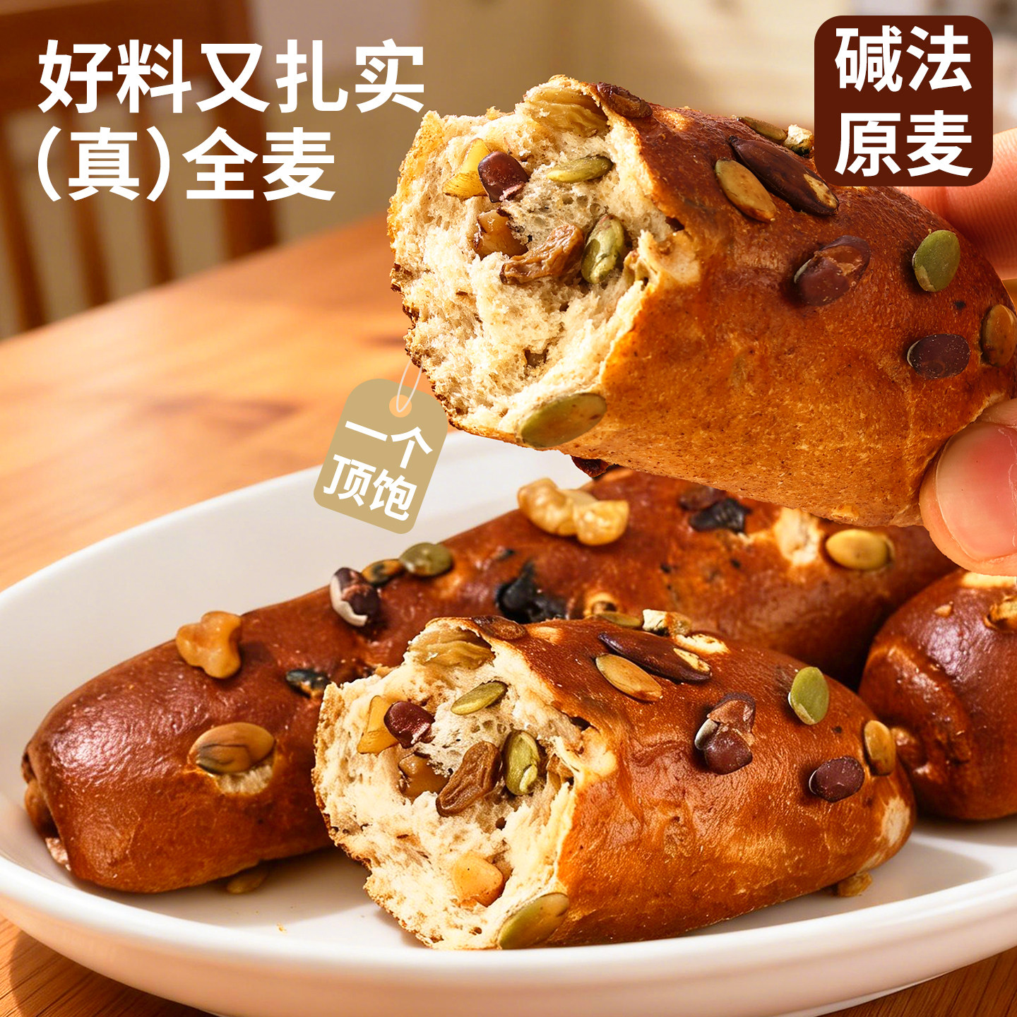 全麦碱水坚果面包棒早餐减低脂无加蔗糖油卡代餐主食健康饱腹零食