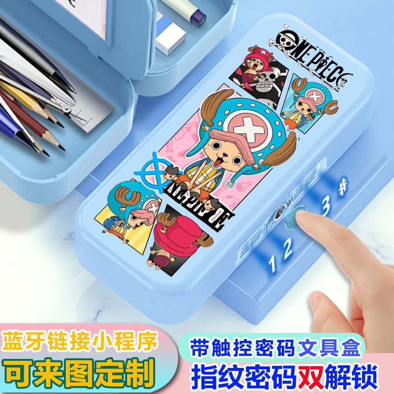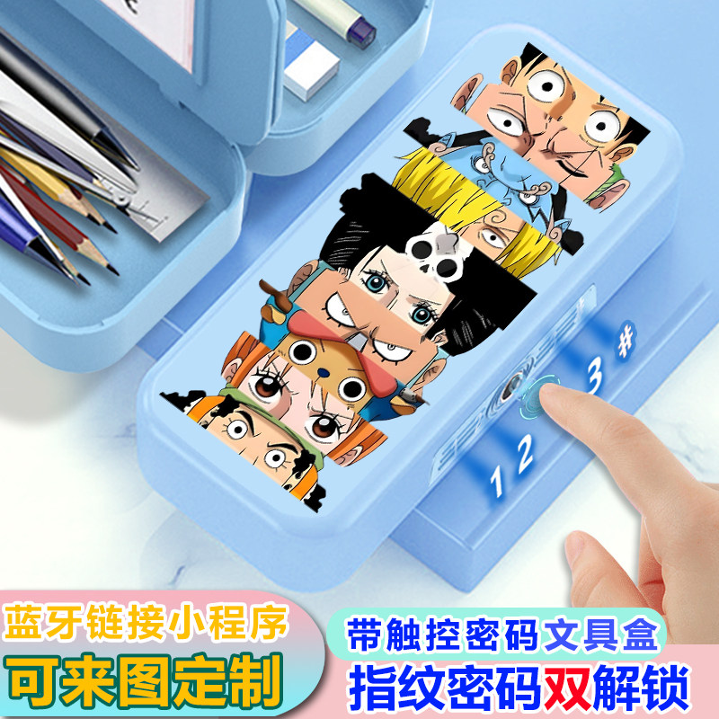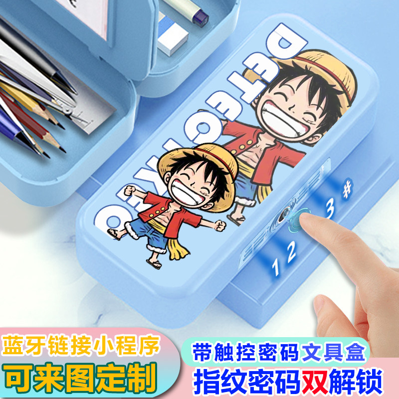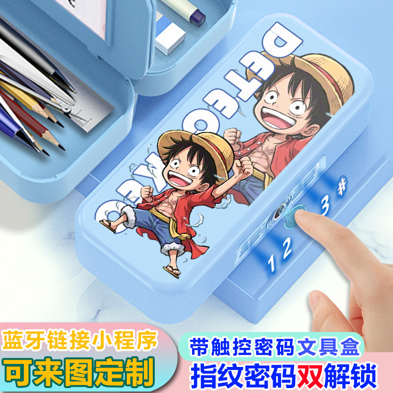 海贼王路飞指纹文具盒小学生男孩触控密码解锁铅笔盒多功能黑科技