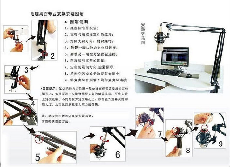 电容麦克风支架桌面悬臂支架直播无线话筒支架防震架台式升降架子