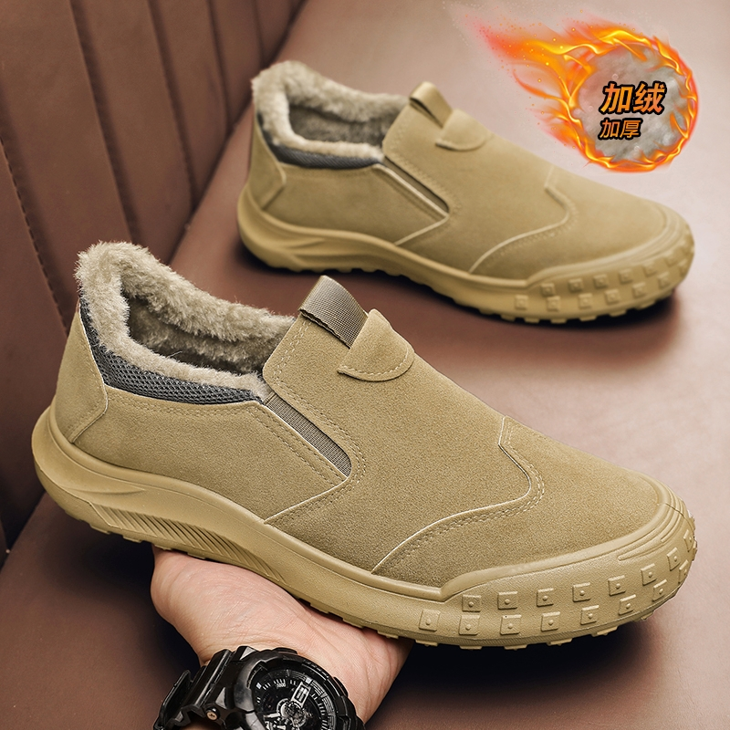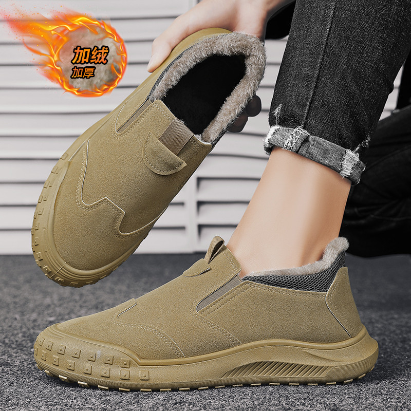男鞋冬季加绒加厚保暖休闲运动一脚蹬棉鞋工作防水防滑劳保鞋耐磨