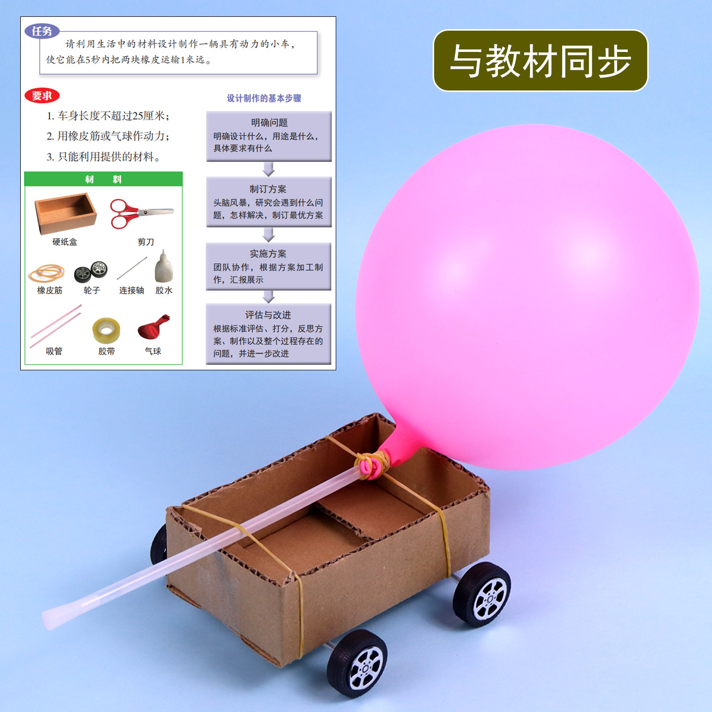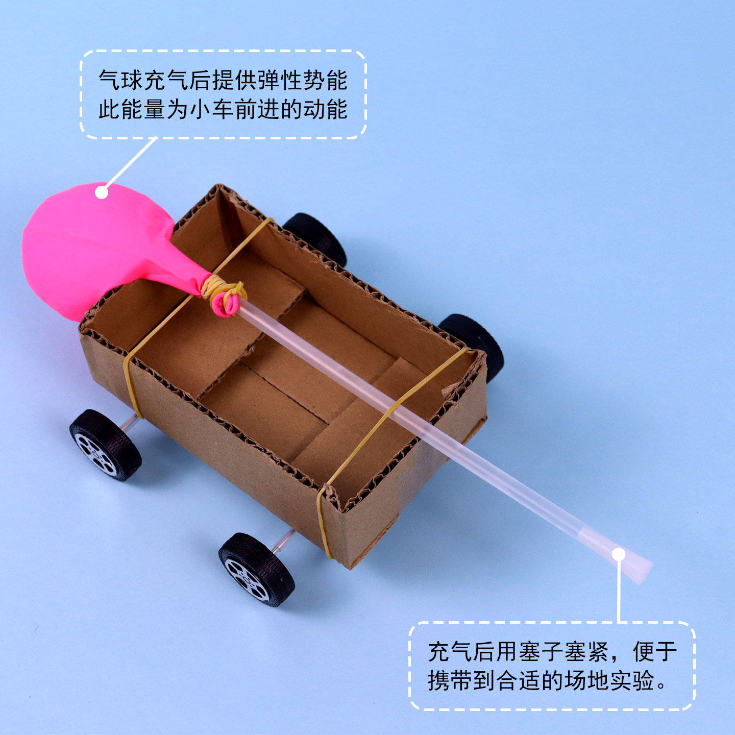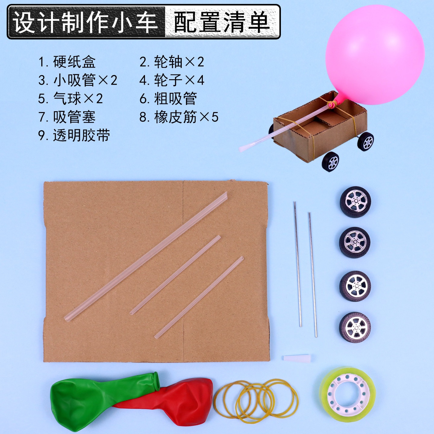 气球驱动小车设计制作空气动力反冲小车模型科技手工小制作小学生科学实验器材物理教学仪器DIY材料包教科版