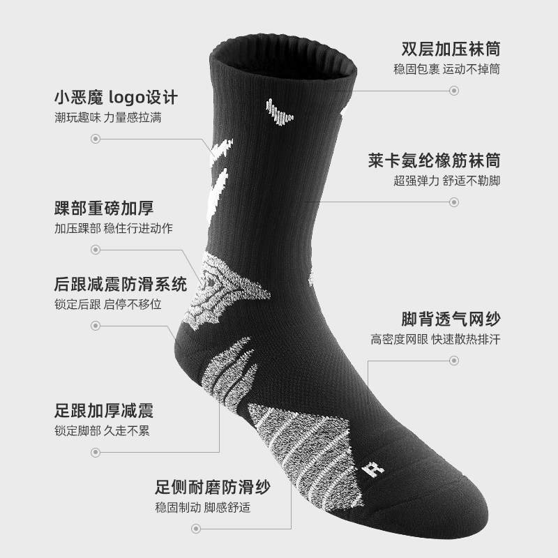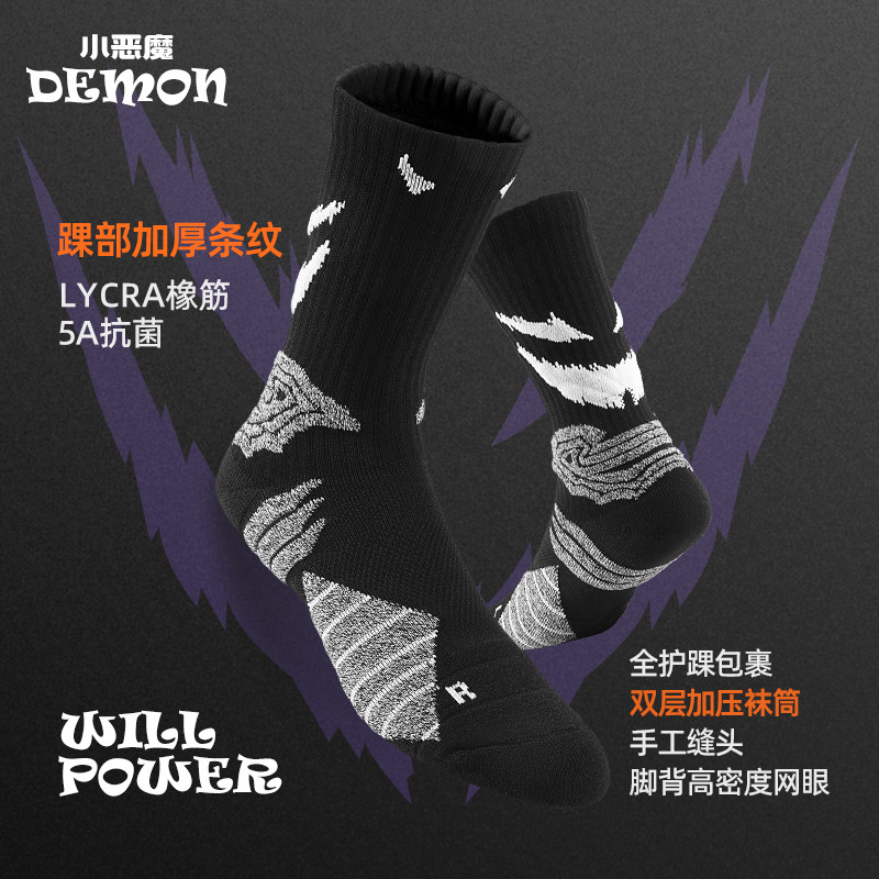 专业实战恶魔篮球袜子男青少年加厚毛巾底防滑美式精英袜透气高筒