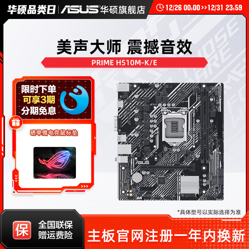 Asus/华硕 PRIME H510M-K R2.0台式机电脑主板MATX赛扬奔腾处理器