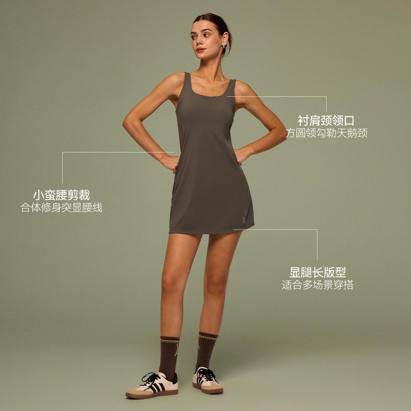 安欧兔-圆领连衣裙女 自带胸垫防走光打底裤两件套运动网球裙显瘦