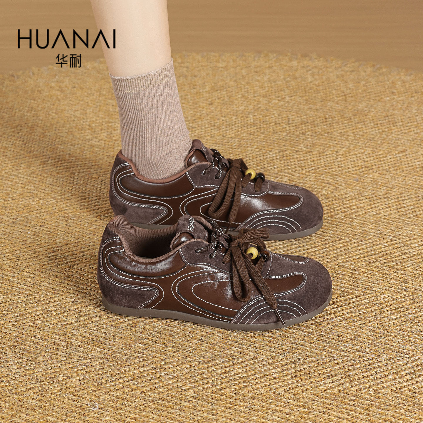 复古百搭拼色双鞋带