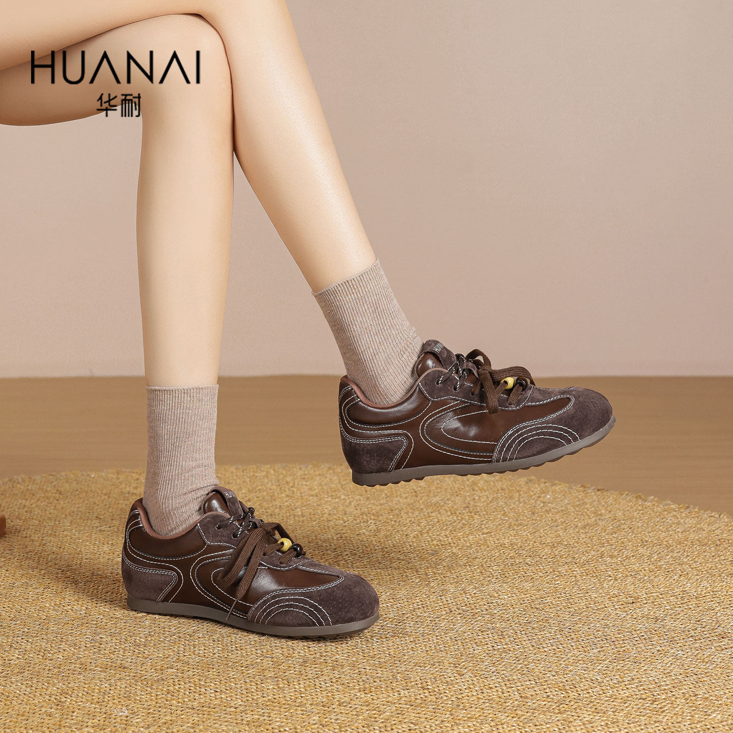 华耐拼色德训鞋女2025秋季新款复古百搭阿甘鞋双鞋带运动休闲鞋女