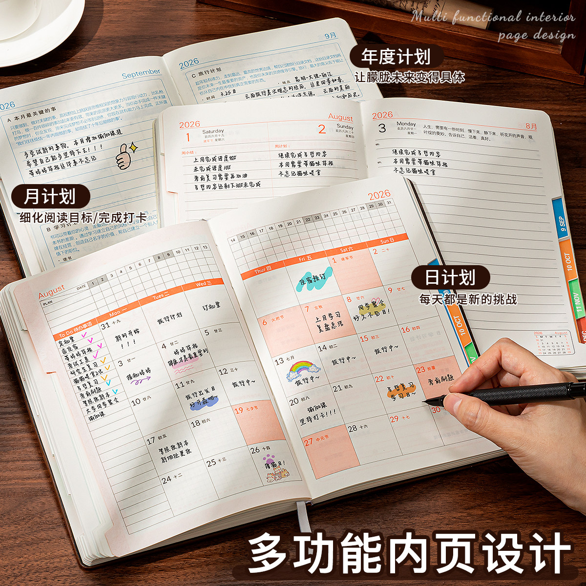 2026全年日程本计划表新款定制笔记本子工作日志日记本日历记事本自律打卡效率手册时间管理手账高颜值ins风