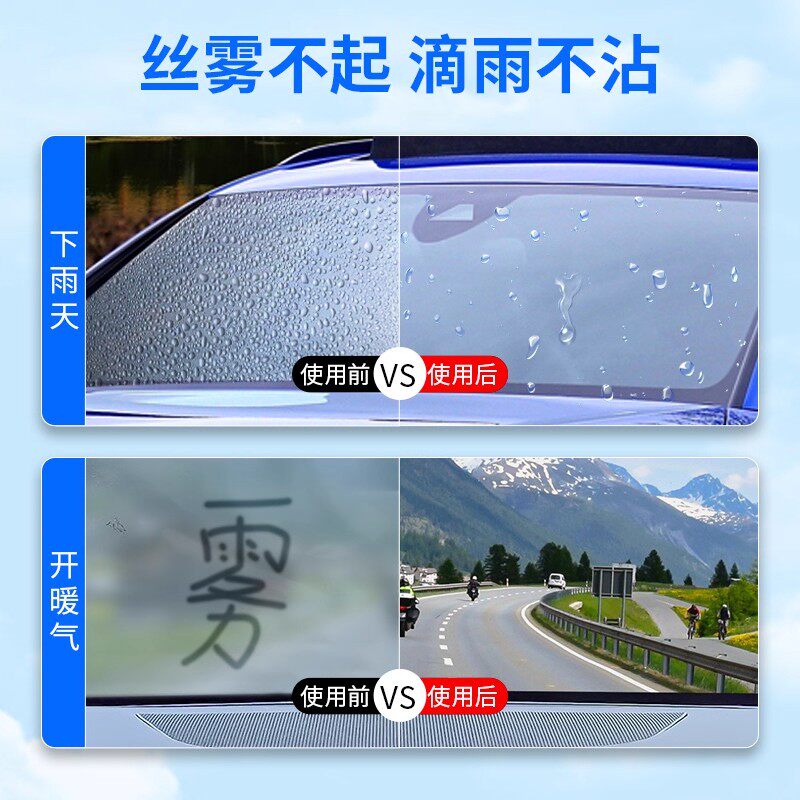 汽车玻璃防雾湿巾防雨剂下雨天车窗后视镜防雨除雾去油膜泡沫清洁