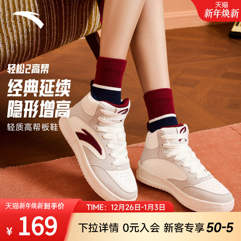 安踏轻松2丨经典撞色高帮板鞋女鞋2025冬季新款滑板鞋潮流运动鞋