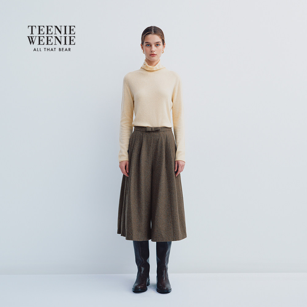 TeenieWeenie小熊女装休闲裤2025冬新款时尚新颖花型高腰阔腿裙裤