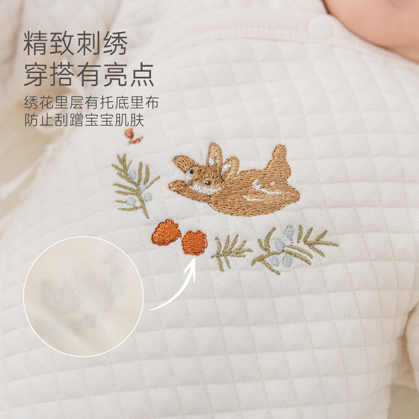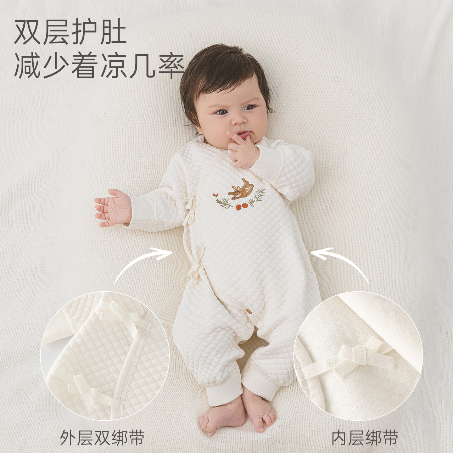 婧麒新生儿婴儿衣服秋冬夹棉满月纯棉初生宝宝秋装连体衣a类爬服