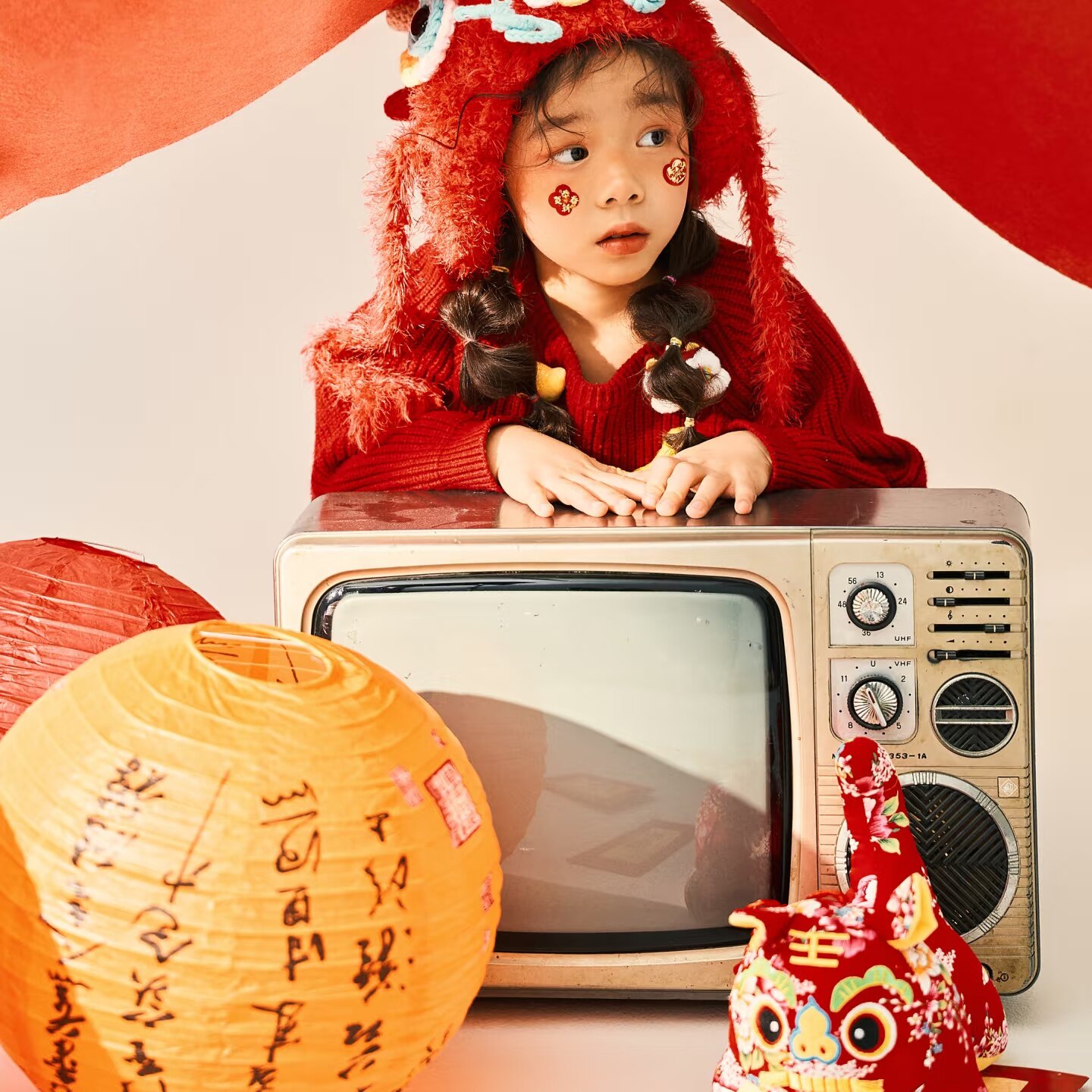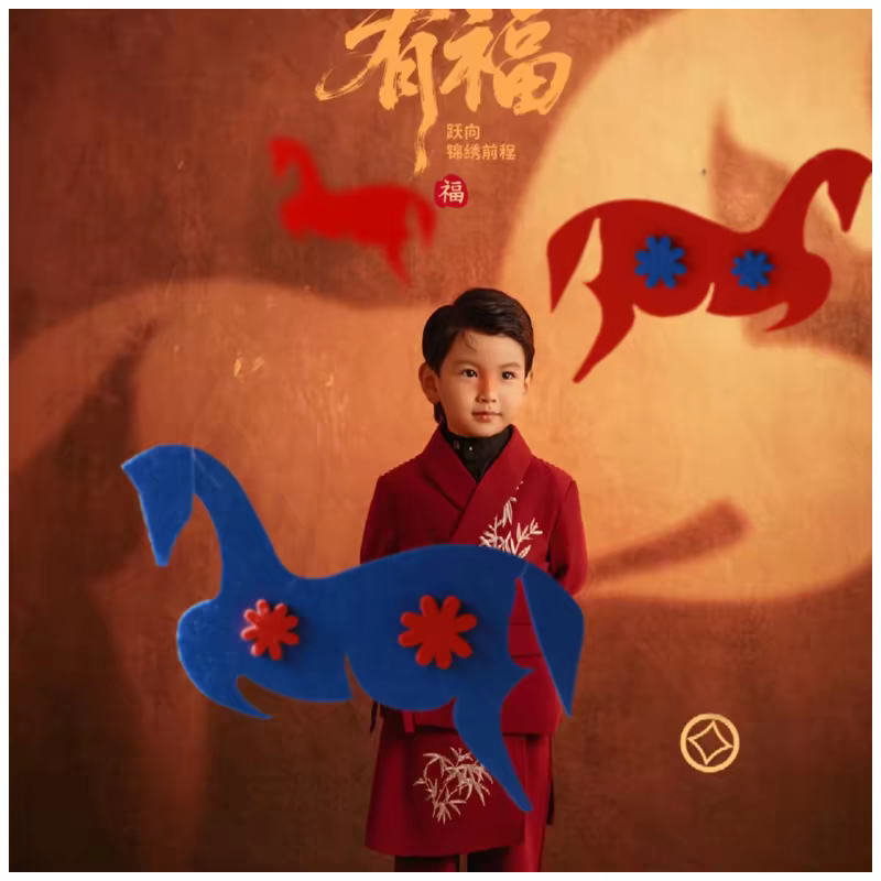马年新年主题醒狮摄影道具大男孩中国红复古拍照圣诞风道具大福字