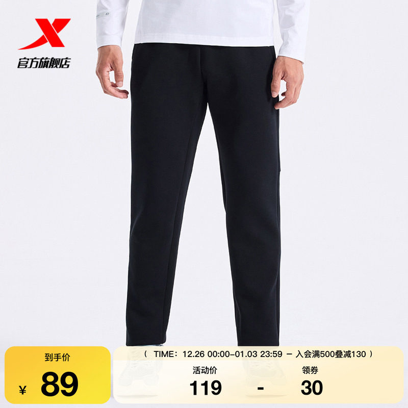 特步加绒卫裤男裤加厚秋冬款保暖缩脚裤直筒休闲裤百搭男子运动裤