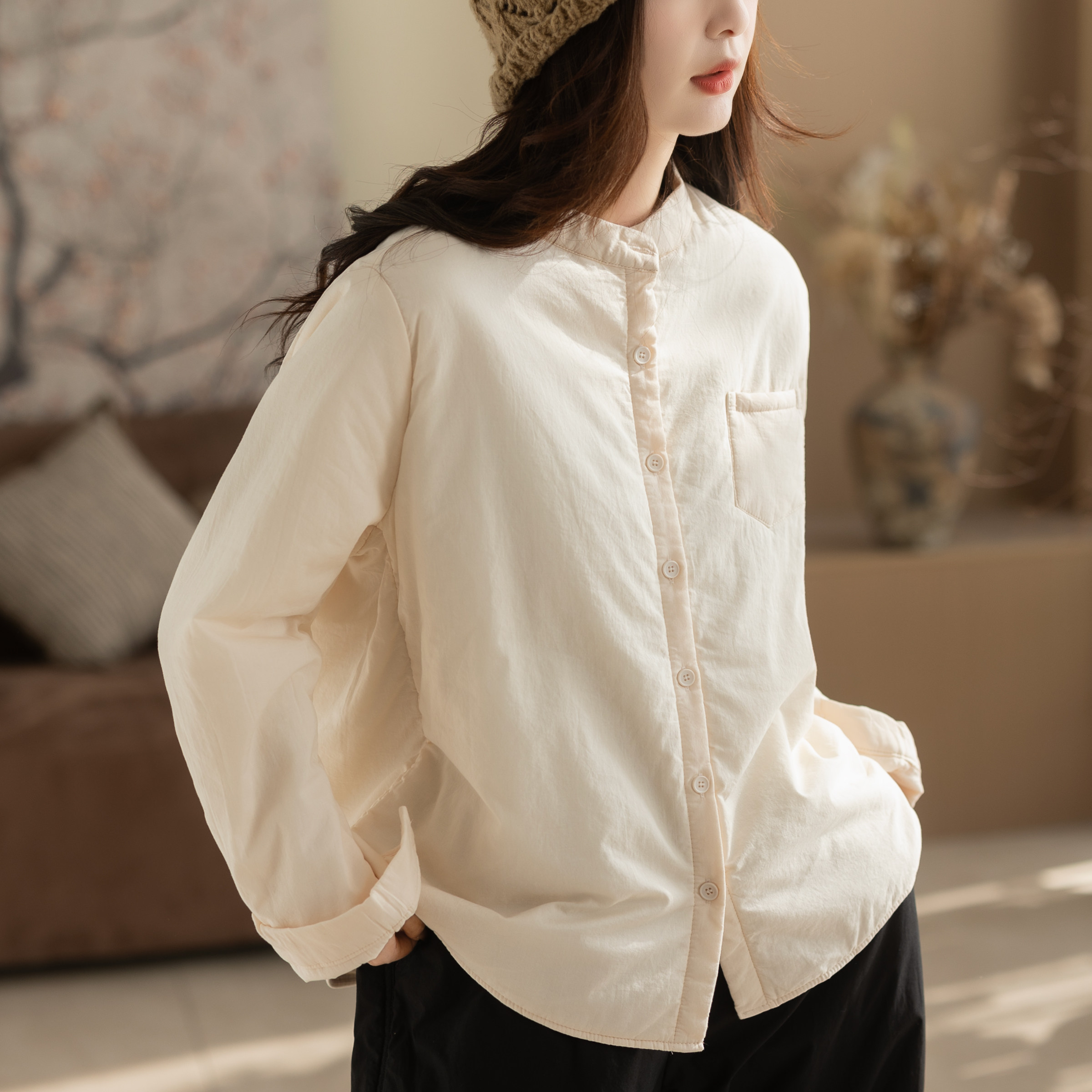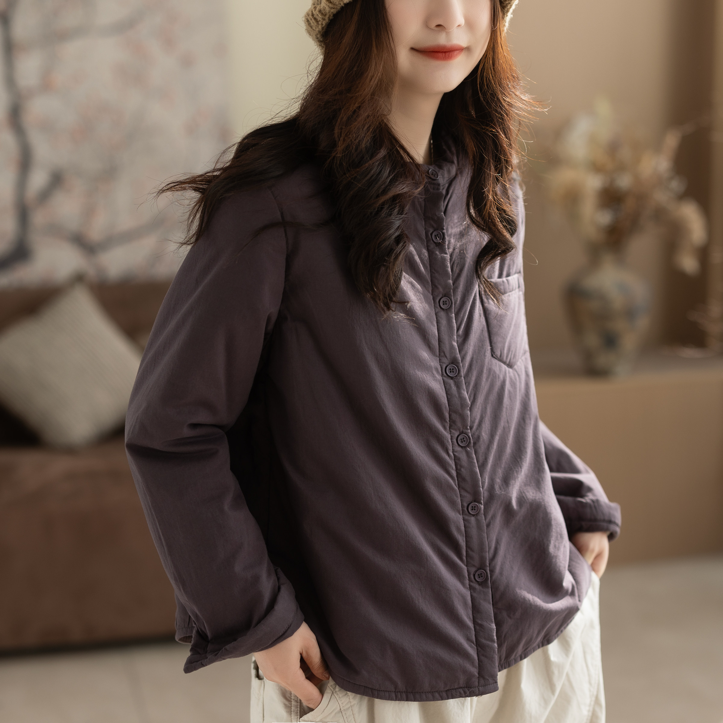 咖咪羽棉服女冬装新款文艺休闲纯色宽松百搭复古时尚女装上衣外套