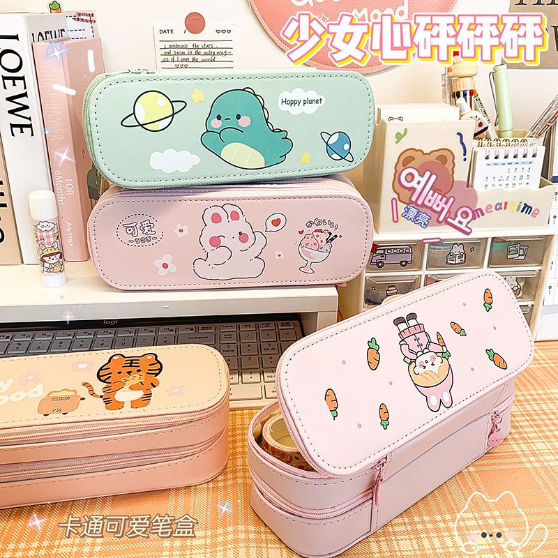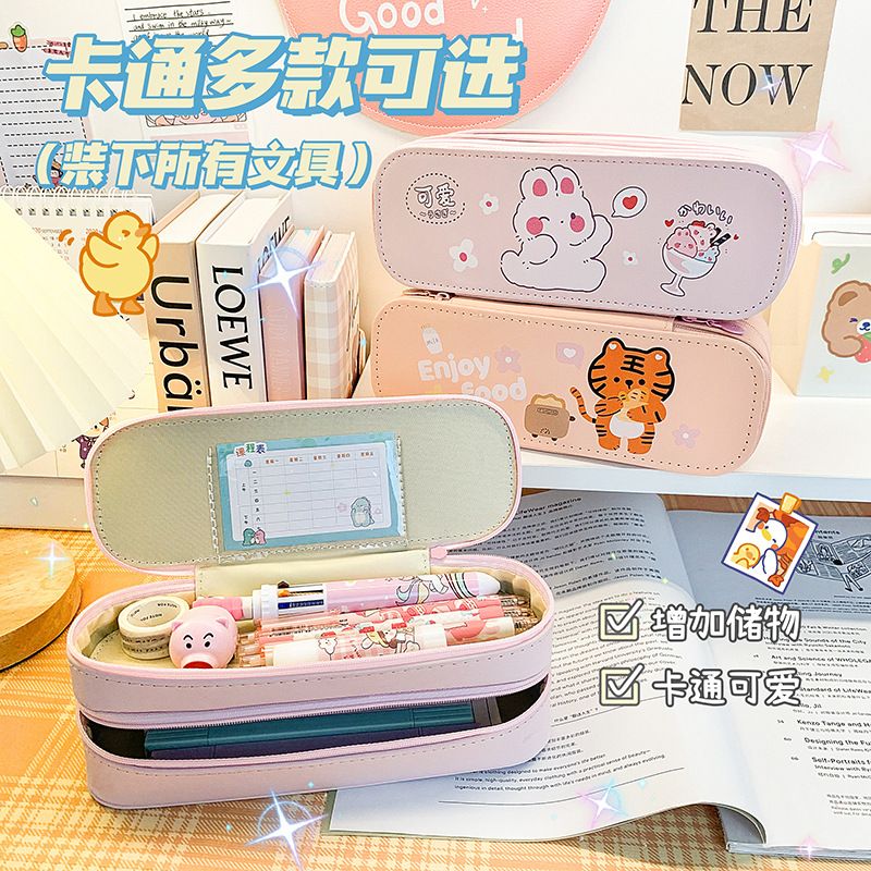 新品 六一双层笔袋学生礼物学习用品收纳大容量文具盒多功能铅笔