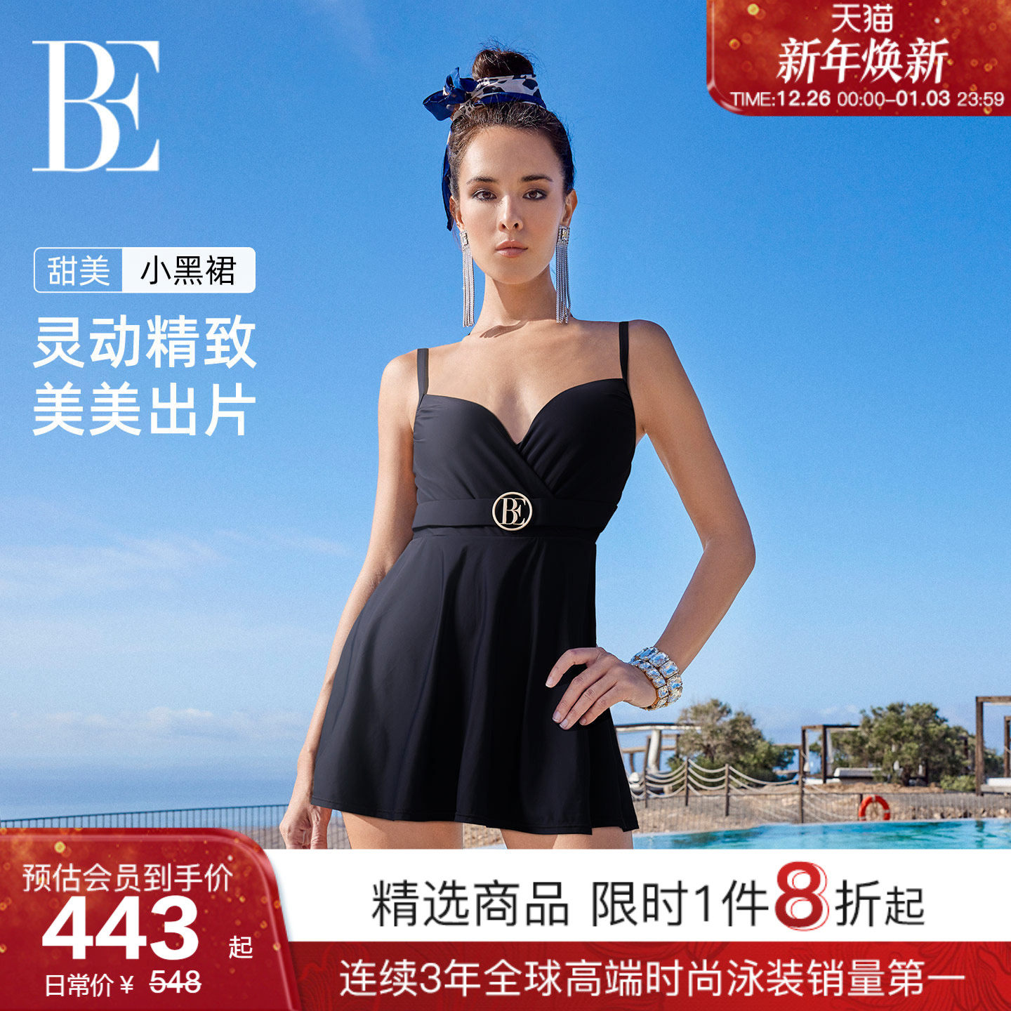 BE范德安时尚系列连体泳衣裙式女士舒适提胸聚拢遮肚显瘦游泳绝美