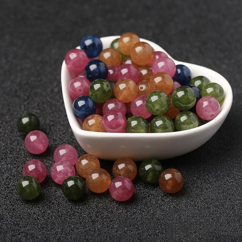 天然彩碧玺西瓜彩虹糖果色三圈单圈手链散珠DIY吊坠水晶玉髓