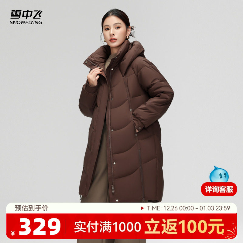 雪中飞2025冬新款女士中长款羽绒服连帽加厚韩版舒适时尚立体百搭