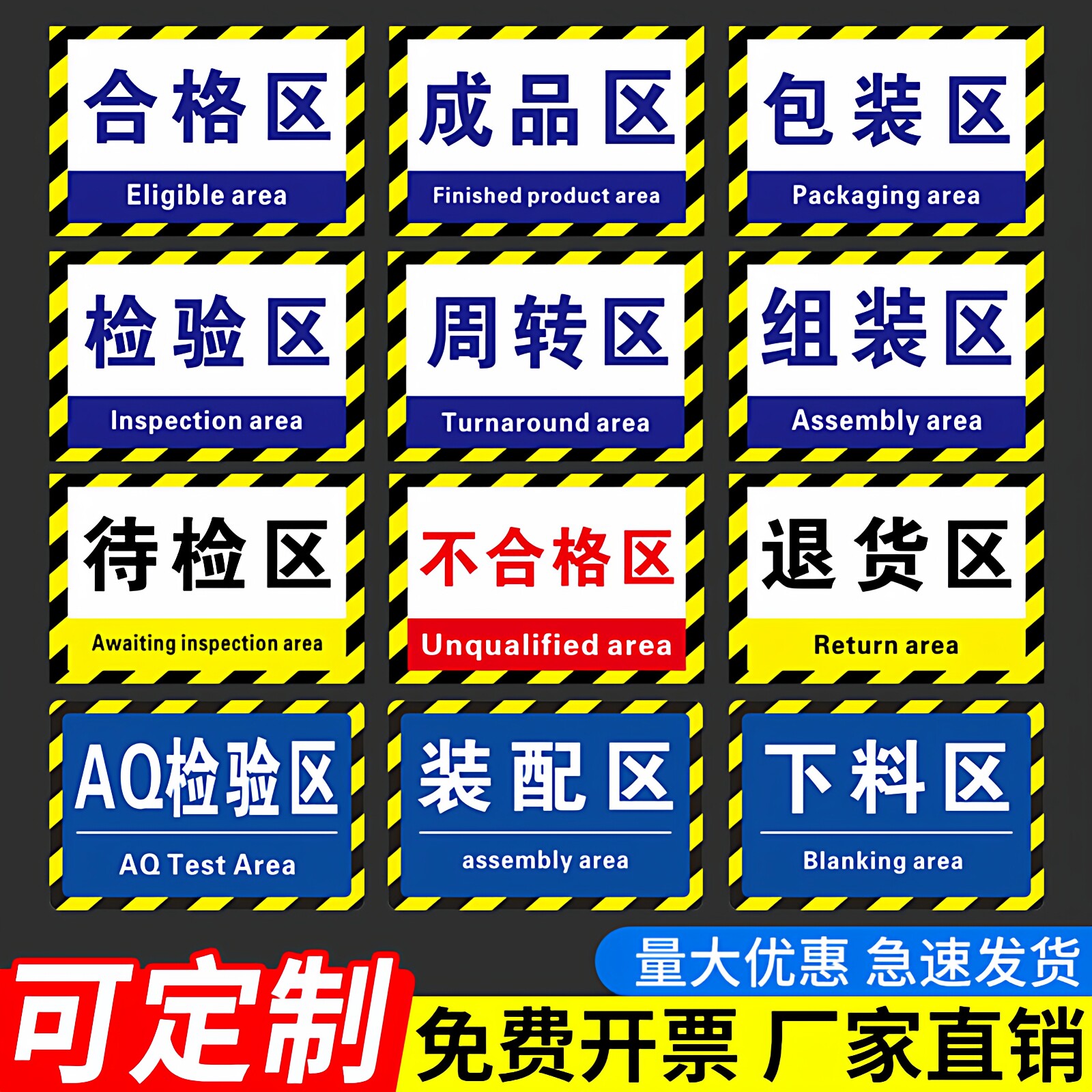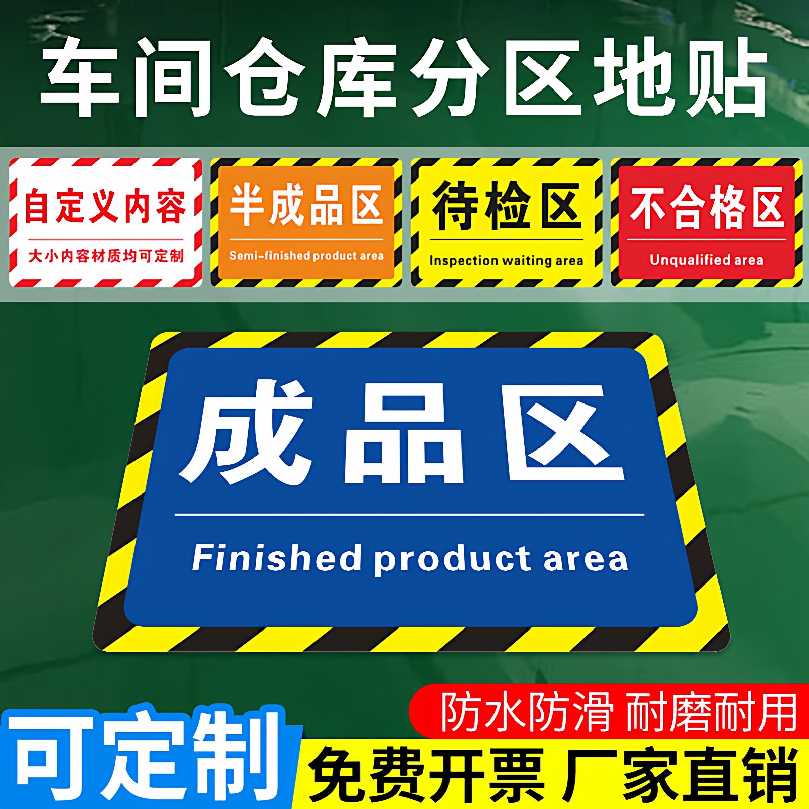 工厂车间仓库地标指示贴区域分类地贴标识牌待检区成品区出货区不